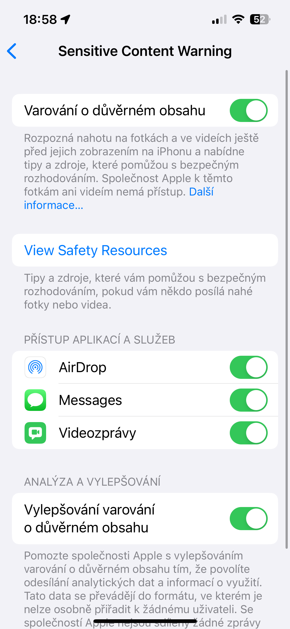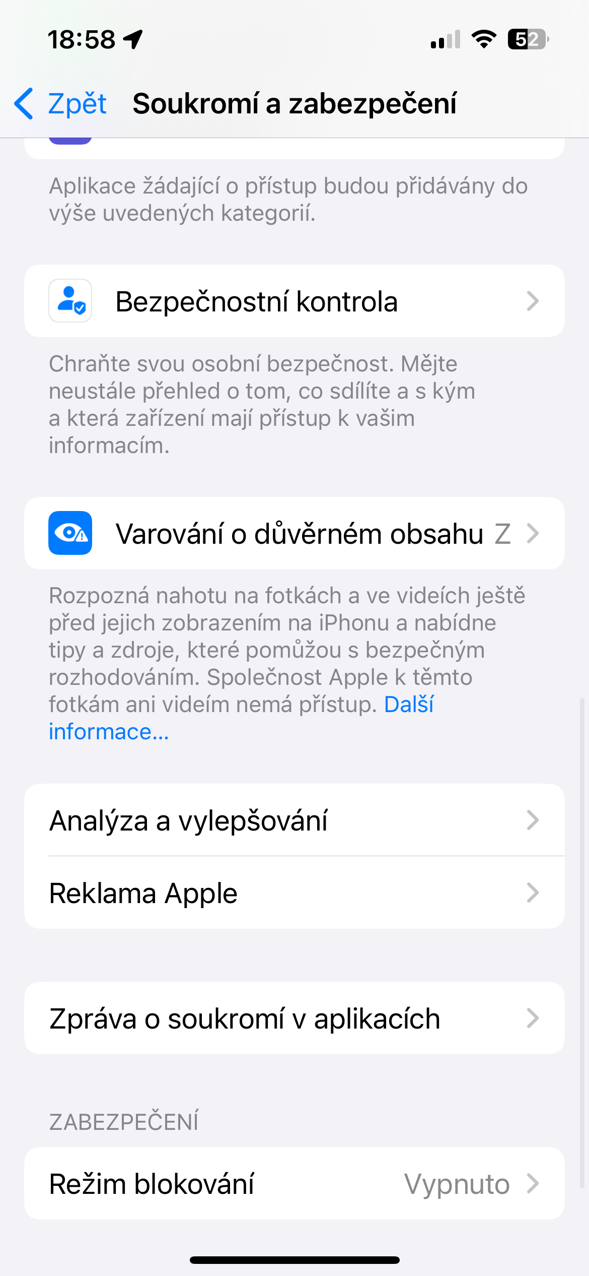 Společnost Apple v iOS 17 zavedla funkci upozornění na citlivý obsah. Zjednodušuje blokování potenciálně nevhodného obsahu pouhým kliknutím, čímž bere na vědomí obrovské množství nevhodného materiálu na internetu. Chcete-li ji aktivovat, spusťte Nastavení -> Soukromí a zabezpečení. Zvolte Varování o důvěrném obsahu a aktivujte příslušnou položku.