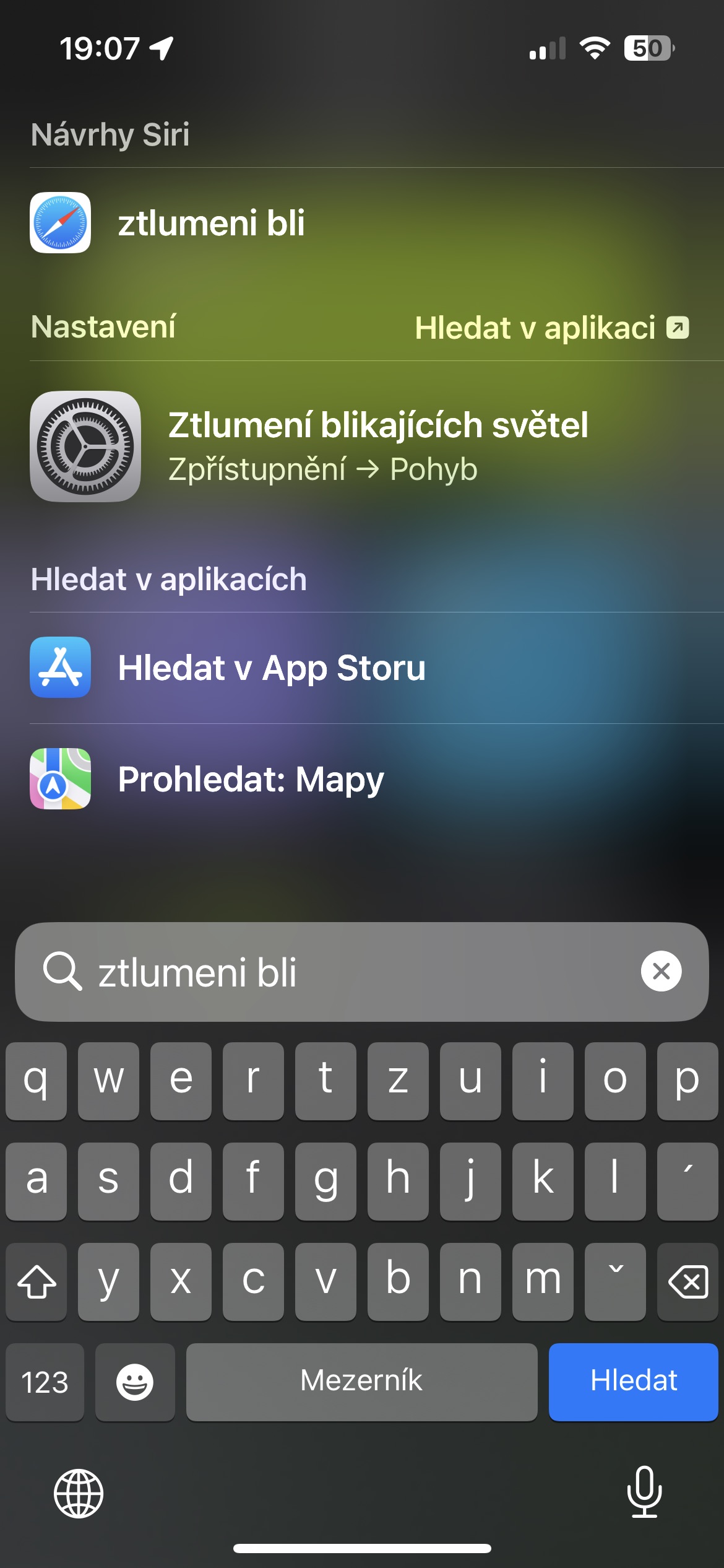 Nastavení Zpřístupnění ze Spotlightu