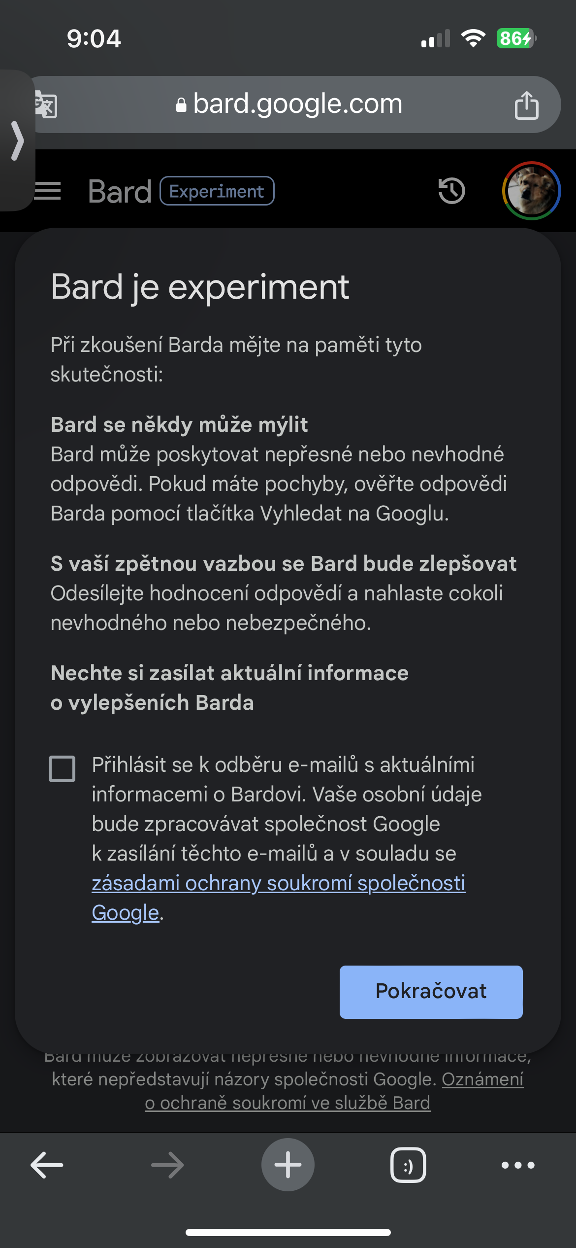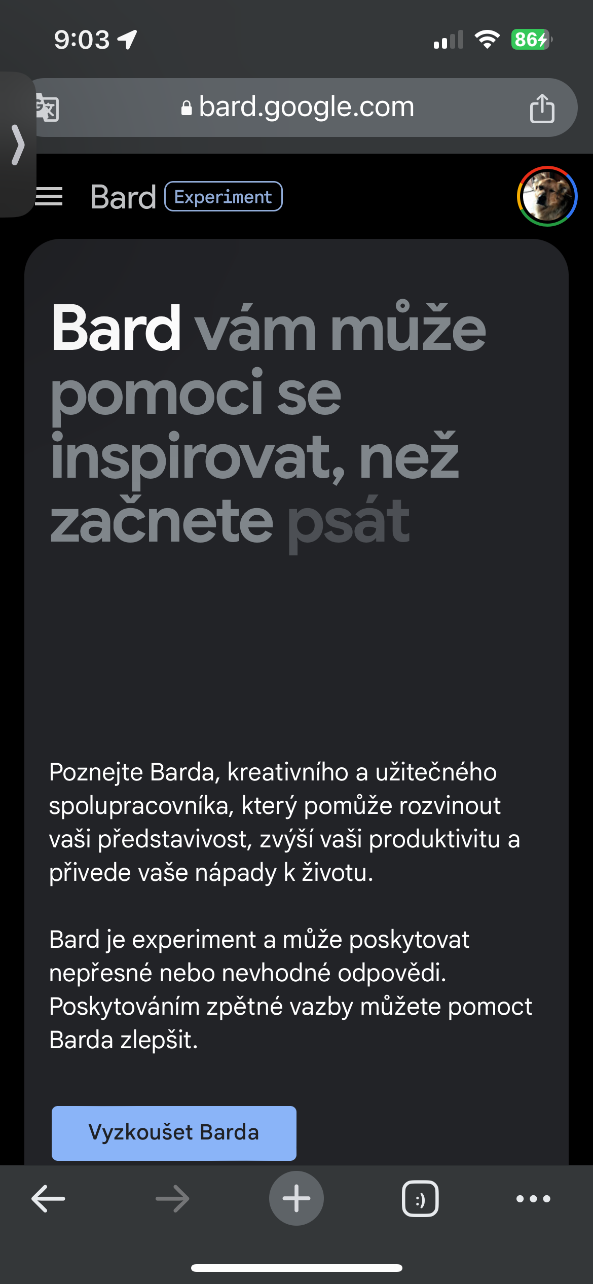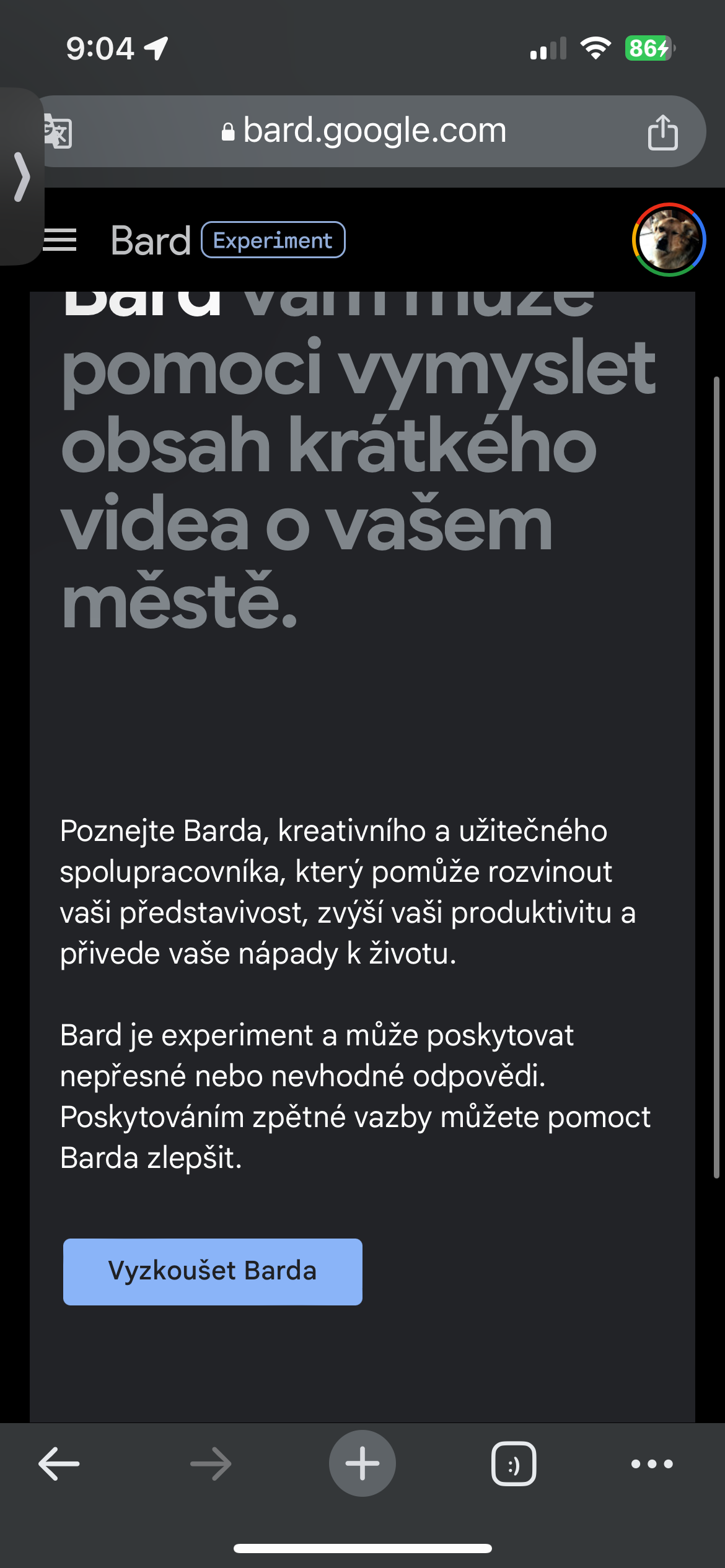 Pokud chcete Barda na vašem iPhonu vyzkoušet poprvé, určitě vás zajímá, jak vlastně na to. Spusťte na iPhonu váš oblíbený webový prohlížeč a do jeho adresního řádku zadejte URL bard.google.com. Následně klepněte na tlačítko s nápisem Vyzkoušet Barda. Než se pustíte do zkoušení, čeká vás ještě odsouhlasení podmínek a další nezbytnosti.