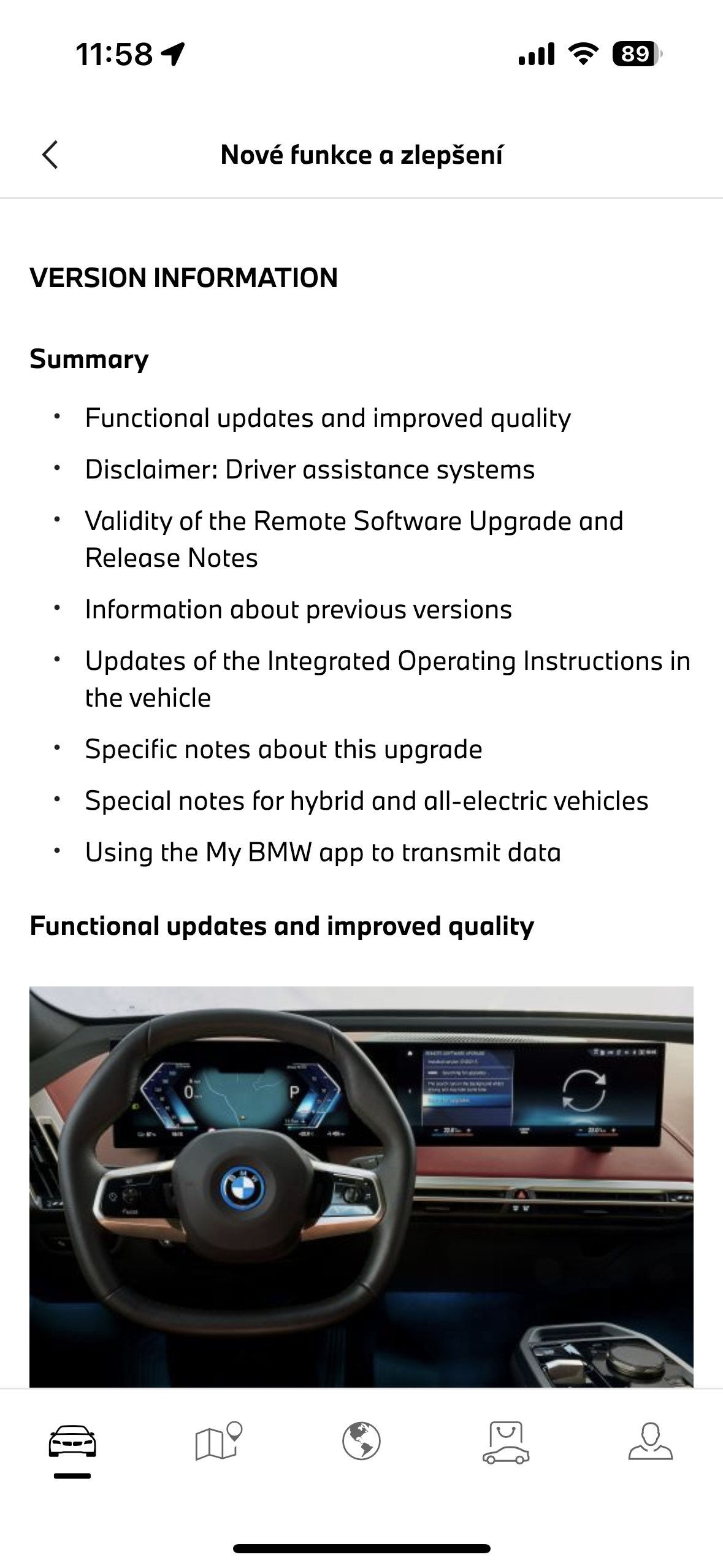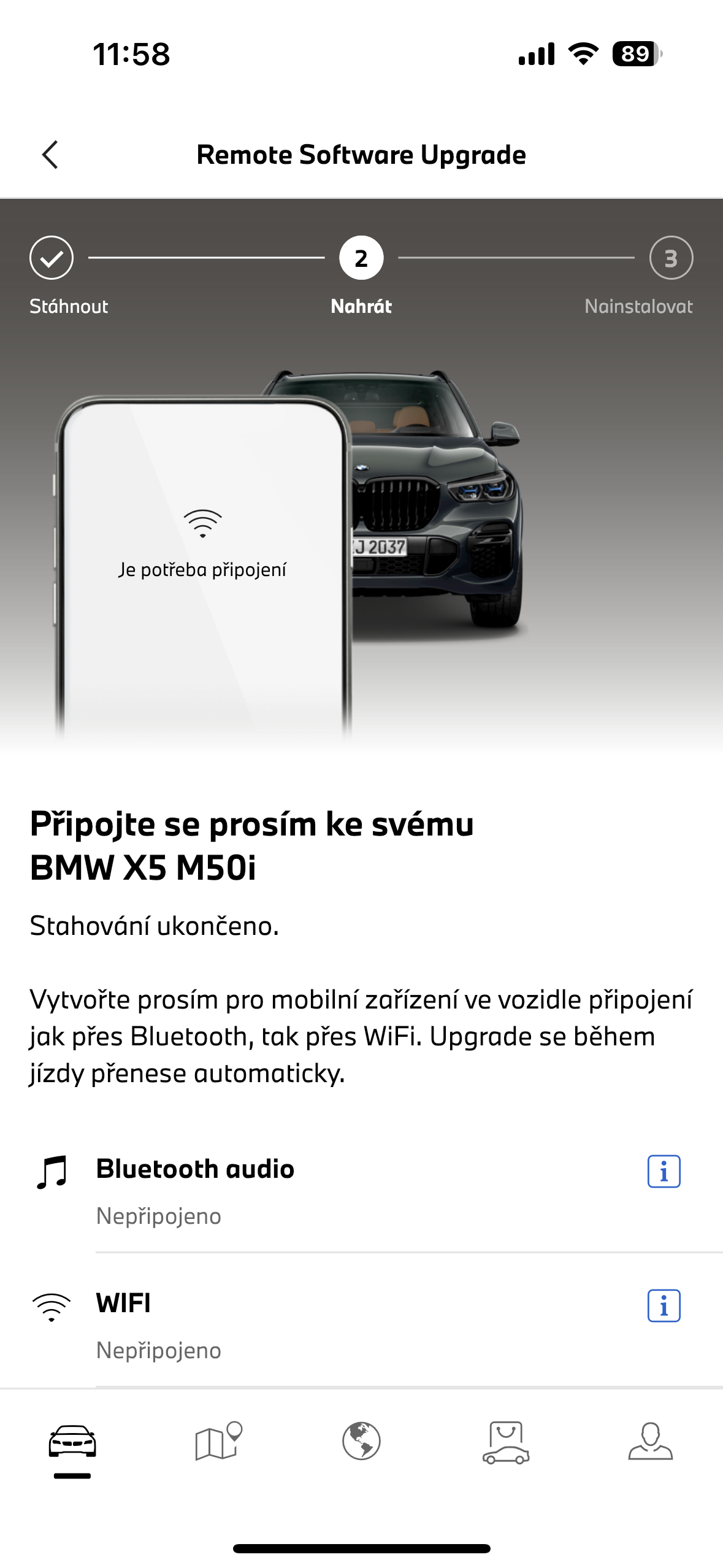 Všechny vozy BMW vybavené systémem iDrive 7 nebo iDrive 8 nabízí takzvané Remote Software Upgrade, tedy aktualizace vozu pomocí mobilního telefonu. To nejdůležitější, co pro to musíte udělat, je používat aplikaci My BMW, do které stačí přidat si své vozy a propojit s nimi aplikaci. Přidání vozů je velmi jednoduché a spočívá v podstatě pouze v tom, že do aplikace zadáte VIN číslo vozu, budete ve voze s oběma klíčky, které k němu máte a potvrdíte přidání do aplikace na displeji vašeho vozu.