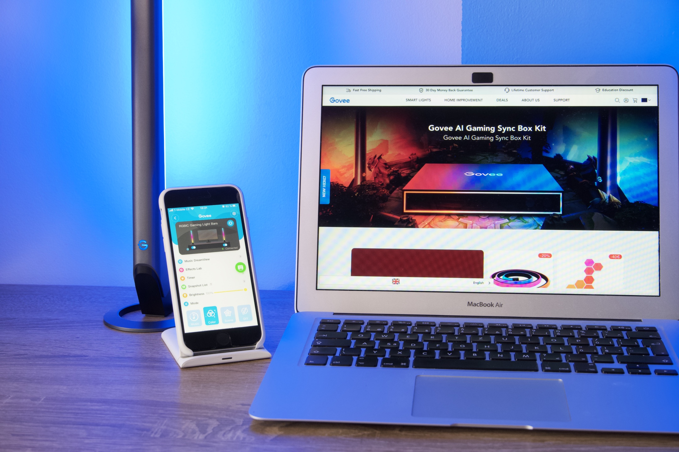 Govee RGBIC Wi-Fi Gaming Light Bars se může pochlubit příkonem 24 W, životností až 50 000 hodin a již zmíněnými 16 miliony barev. Nabízí 62 scén a 8 režimů řízených zvukem, se kterým se dokáže synchronizovat. Nezanedbatelná je i kompatibilita s ekosystémem Razer Chroma RGB, prostřednictvím Govee Home v mobilním zařízení a aplikace Razer Synapse 3 a Govee Desktop v počítači, kterou ocení především nadšení hráči. Pokud jde o chytrou domácnost nechybí podpora Google Assistant a Amazon Alexa. Zařízení Govee lze ovládat též skrze Siri, pakliže vytvoříte patřičné zkratky v aplikaci Govee Home. Jak vyplývá z předchozího popisu, není nutné se omezovat jen na jedinou barvu, ale světelné tyče je možné rozdělit na jednotlivé barevné sekce.