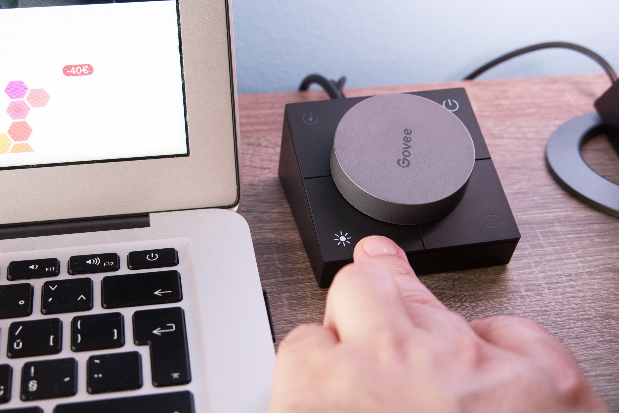 Kontrola nad jednotlivými parametry pomocí chytrého ovladače je přímočará a přehledná. K dispozici jsou 4 tlačítka, jejichž funkce jsou znázorněny patřičnými podsvícenými symboly. Jak již bylo zmíněno úvodem, ovladač nabízí samozřejmě možnost zapnutí či vypnutí v pravém horním rohu, na téže straně, ale v dolní části se nachází přístup ke změně odstínu barev, jejichž variantu následně uživatel vybírá pomocí velkého otočného ovladače uprostřed. Totéž platí pro změnu intenzity v levém dolním rohu a zbývá magické tlačítko s ikonou noty, které na hudbu reaguje velmi dobře a v místnosti snadno vykouzlí atmosféru tanečního klubu.