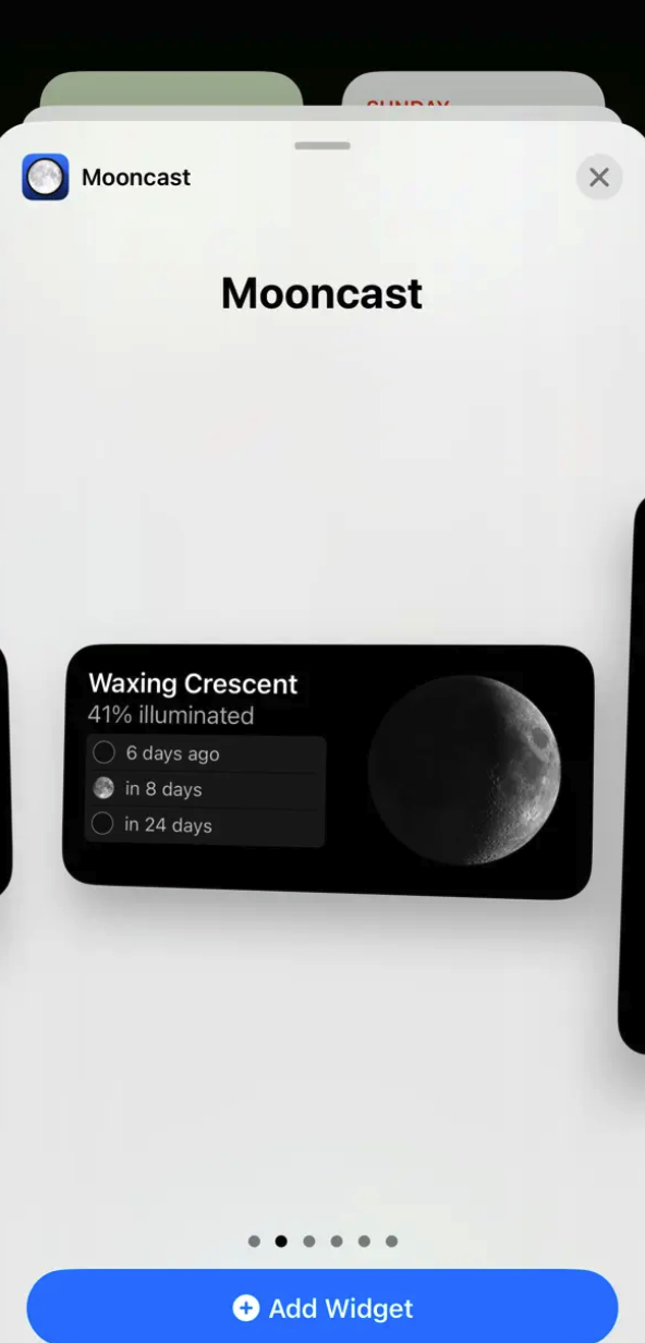 Podobnou službu jako dříve zmíněná aplikaci Lunar Phase Widget vám poskytne i Mooncast. Mooncast vás dokáže spolehlivě informovat nejen o fázích Měsíce, ale umí vám také poskytnout celou řadu dalších velmi užitečných informací, které s tímto tématem souvisí. Vybrané údaje můžete také přehledně sledovat v podobě widgetů na uzamčené obrazovce vašeho iPhonu.