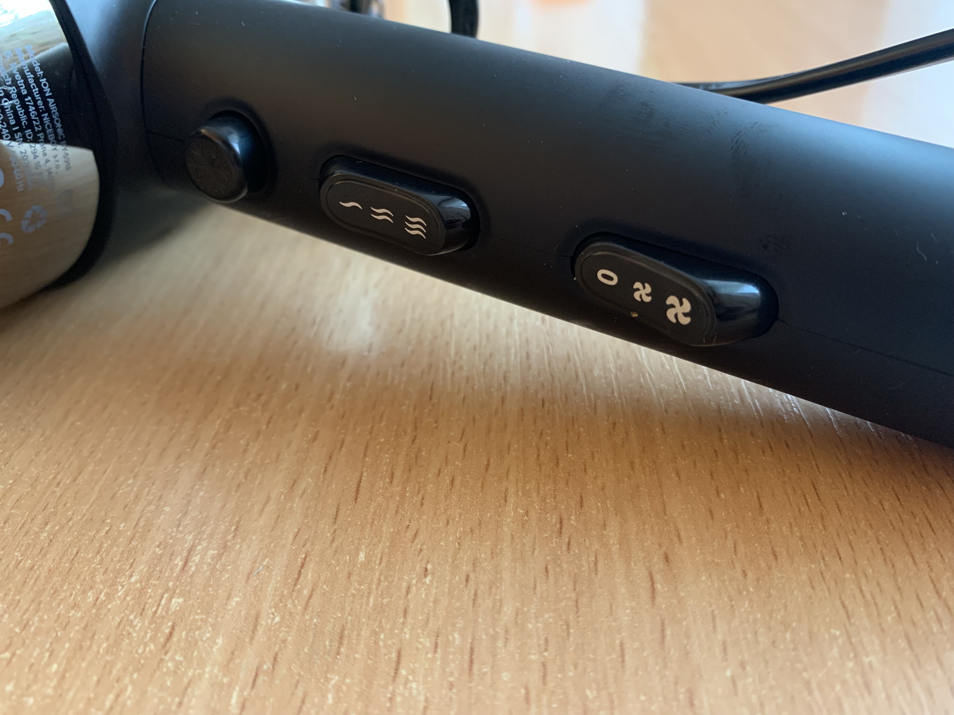 Design nikoho příliš nepřekvapí. Stále se totiž jedná „pouze“ o obyčejný fén vyhotovený z plastu. Na jeho rukojeti naleznete tři tlačítka. K regulaci teploty, rychlosti a spínač chlazení. Horní část produktu je lesklá, což působí na první pohled velmi pěkně. Naleznete zde také logo značky Niceboy. Rozhodně lze ocenit zpevnění kabelu u dolní straně rukojeti, což je jistě dobrá zpráva a dává dám to jistou záruku, že by kabel mohl vydržet opravdu dlouho.