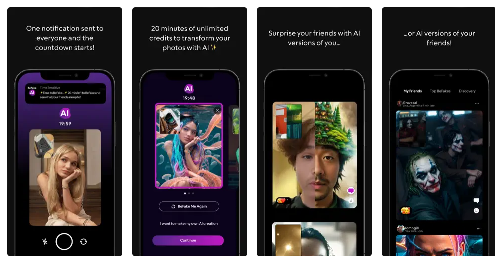 Platforma přebírá základní premisu BeReal, ale obrací ji vzhůru nohama. Do tvůrčího procesu zde vstupuje se silou umělé inteligence, jež uživateli umožňuje přidávat AI efekty do svých obrázků, a proměnit se tak prakticky v cokoli, respektive být tak falešným, chceme-li kreativním, jak jen se mu zachce.