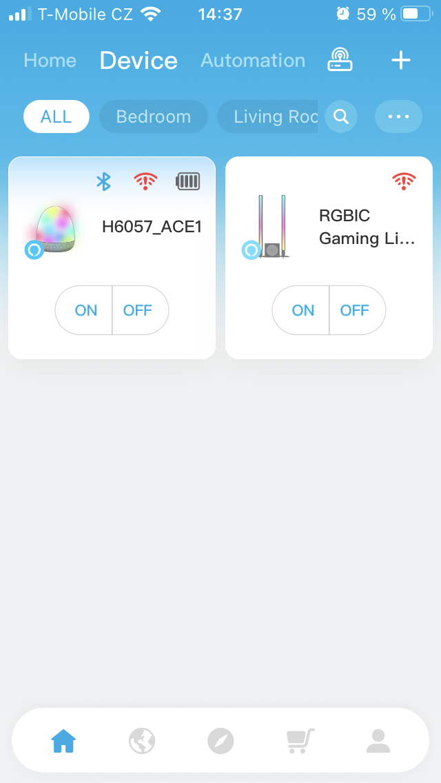 Jak již bylo řečeno, aplikace Govee Home poskytuje přístup k řadě funkcí přehledným a jednodušším způsobem, než jaký může nabídnout samotné fyzické ovládání. Po instalaci budete vyzváni k registraci a vzápětí už vám bude k dispozici přehledné rozhraní, bohužel pouze v angličtině, pomocí kterého snadno Govee RGBICW Night Light spárujete. Nechybí ani možnost vzdáleného ovládání, pakliže zadáte přístupové údaje k domácí síti. V záhlaví aplikace, sekci Device pak uvidíte své zařízení, jež se v mém případě hlásí jako H6057_ACE1 a lze jej bez rozkliknutí zapnout nebo vypnout. Pro přístup k jednotlivým parametrům stačí klepnout na ikonu lampičky, pročež se před vámi objeví celá nabídka. Položka „Efekt Lab“ nabízí obrovské množství zajímavě uspořádaných barevných odstínů, „Timer“, jak říká název, zprostředkovává časování pro jednotlivé cykly spínání, vypínání a funkci buzení. Dále zde nalezneme dva pod sebou seřazené slidery pro ovládání hlasitosti a jasu, na které navazuje sada větších ikon s označením „Music“ pro ovládání hudbou, „Color“ pro volbu barvy opět se dvěma praktickými slidery nápomocnými při hledání toho pravého odstínu, „Scene“ zpřístupňuje výběr přehraných kombinací zvuku a světelných efektů šikovně rozdělených do kategorií jako Funny Sleep, Natural a podobně, pomocí „DIY“ lze přizpůsobit chování lampičky vybraným podmínkám a vytvářet zkratky a zbývá „Game“, tedy výběr ze 4 různých dětských her, které reagují na dotyk.