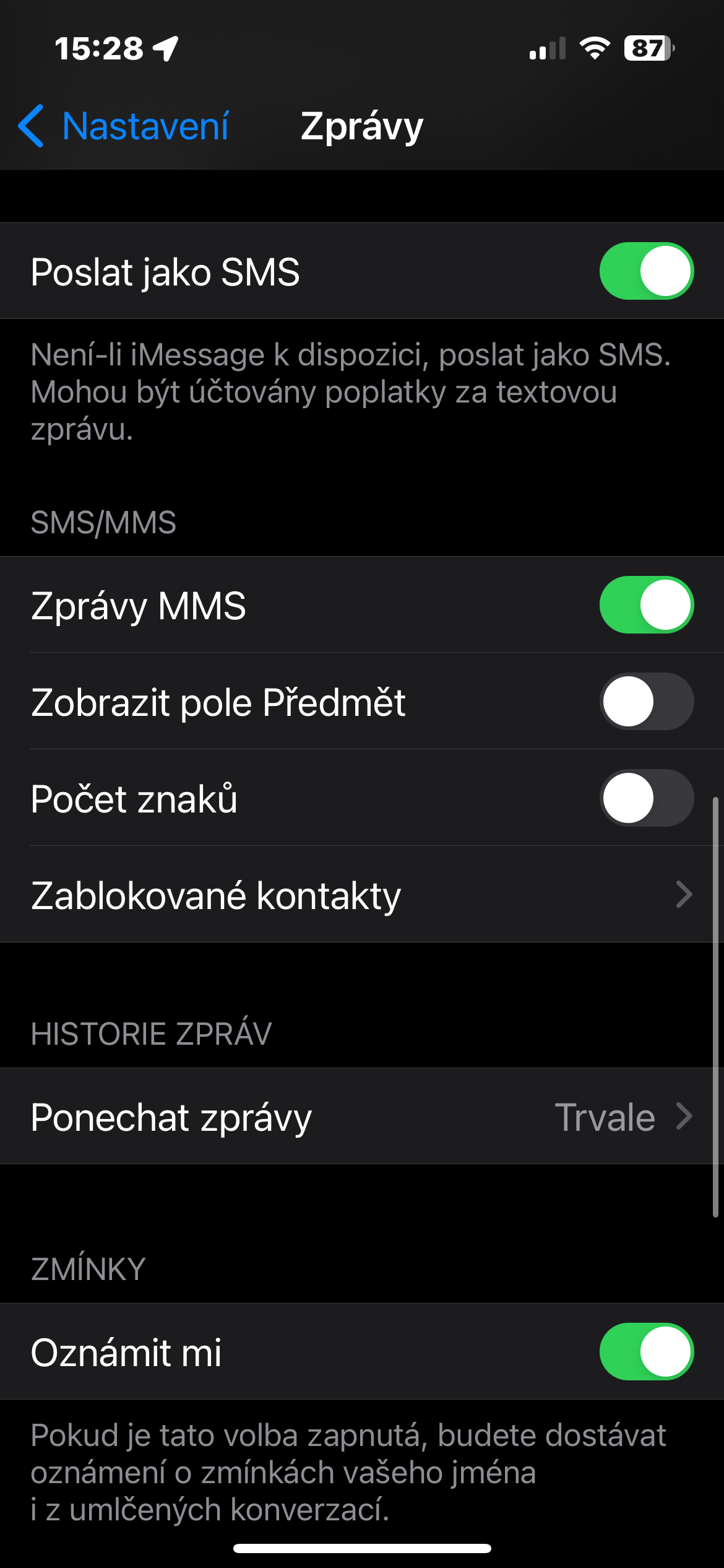 - Zamiřte o něco níže do sekce SMS/MMS.