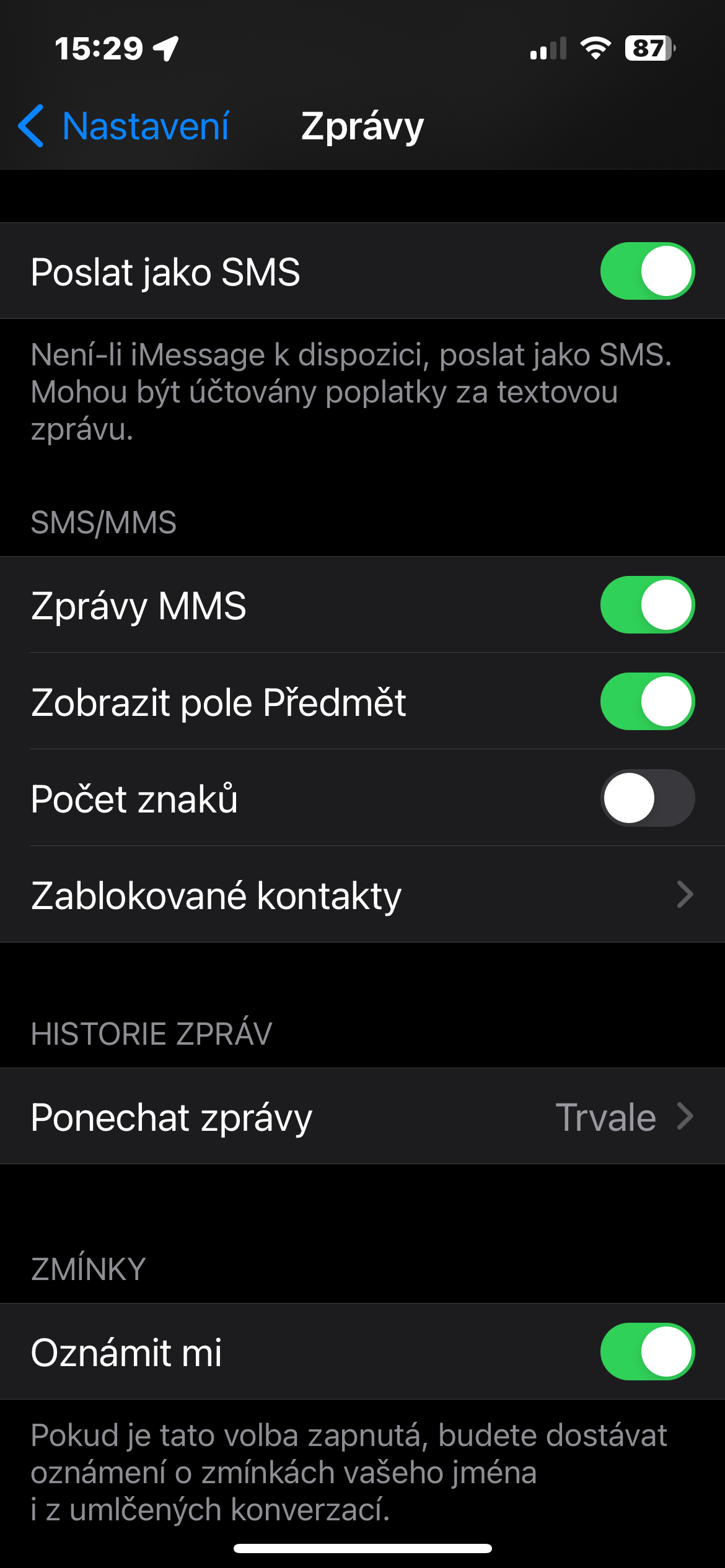 - Na iPhonu spusťte Nastavení -> Zprávy.