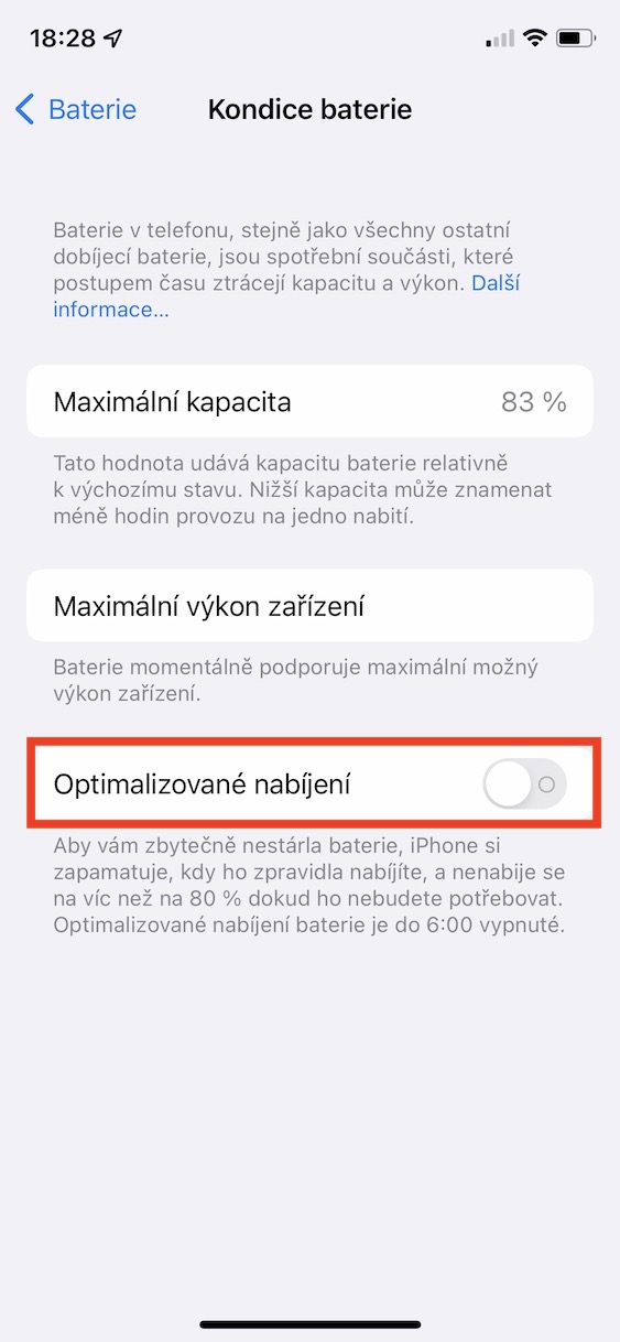Aktualizace operačního systému iOS se obvykle obejdou bez větších problémů, někdy se ale může stát, že ze záhadných důvodů dojde po aktualizaci k deaktivaci funkcí, které jste již aktivovali. Stejně tak se může stát, že po aktualizace některé z funkcí nepracují tak, jak by měly – a platí to i pro optimalizované nabíjení. Pokud máte podezření, že po přechodu na nejnovější betu iOS 17 nefunguje optimalizované nabíjení správně, zamiřte do Nastavení -> Baterie -> Kondice baterie, a optimalizované nabíjení na chvilku vypněte a opět zapněte.