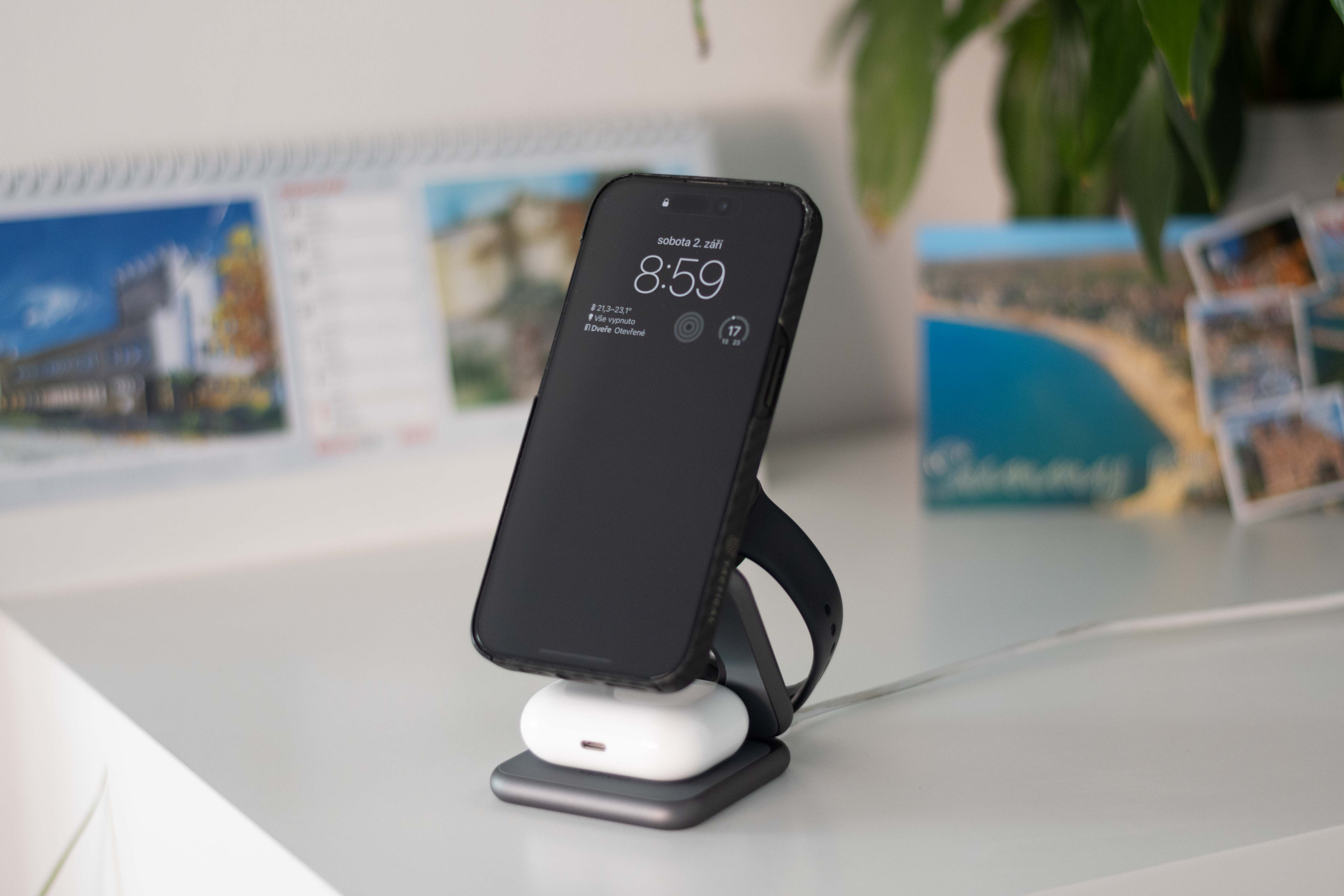 Pokud bych pak měl zhodnotit nabíjení, zde vlastně nemůžu říci taktéž nic negativního – tedy až na to, že nabíjení je zkrátka „jen“ takové, jaké výrobce udává – tedy 7,5W pro iPhone. Nabíječka začíná nabíjet okamžitě po připnutí telefonu, nabíjí po celou dobu připnutí a co mě potěšilo, zahřívá se jen velmi minimálně. Stejně pak lze zhodnotit i nabíjecí plošku pro AirPods či Apple Watch – vše zkrátka funguje naprosto spolehlivě a přesně tak, jak by mělo, což je super. Rychlost nabíjení pak samozřejmě záleží i na tom, co se zrovna chystáte nabíjet, tudíž zde nemá dle mého ani příliš smysl uvádět jakékoliv naměřené časy. Jen tedy znovu zopakuji, že na nabíjení je zde 100% spoleh.