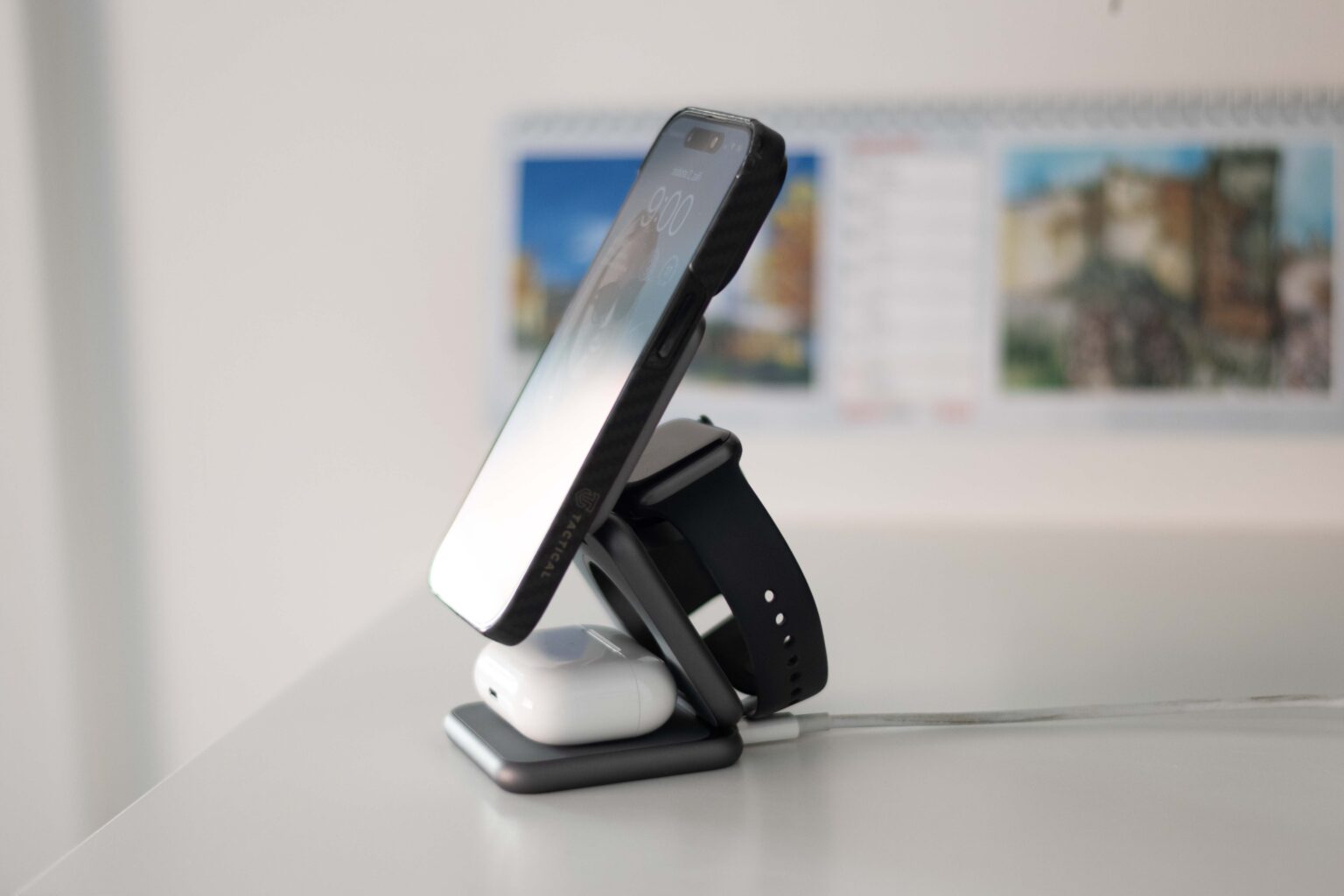 Jak již naznačuje samotný název produktu, Epico Mag+ Foldable Wireless Charger je skládací bezdrátová nabíječka s magnetickou nabíjecí ploškou pro smartphony. Skládá se celkem ze tří částí, přičemž každá jedna část dokáže nabíjet určité zařízení – konkrétně základna je určena na nabíjení AirPods, středový díl na nabíjení Apple Watch a horní díl pak na nabíjení smartphonu. Pokud vás pak zajímá nabíjecí výkon, ten dohromady dosahuje maximálně 22W, přičemž pro Apple Watch je vyhrazeno 3W, pro AirPods 5W a smartphony lze nabíjet až 15W. Je nicméně třeba jedním dechem dodat, že vzhledem k absenci certifikace Made for MagSafe lze iPhony nabíjet „jen“ 7,5W – tedy maximální možnou rychlostí standardního bezdrátového nabíjení. Rychlejší nabíjení by tedy bylo určitě zajímavější, nicméně i tato hodnota není k zahození. Co je pak vyloženě fajn, je to, že v balení nabíječky dostanete kromě ní samotné i 25W PD adaptér pro její napájení.