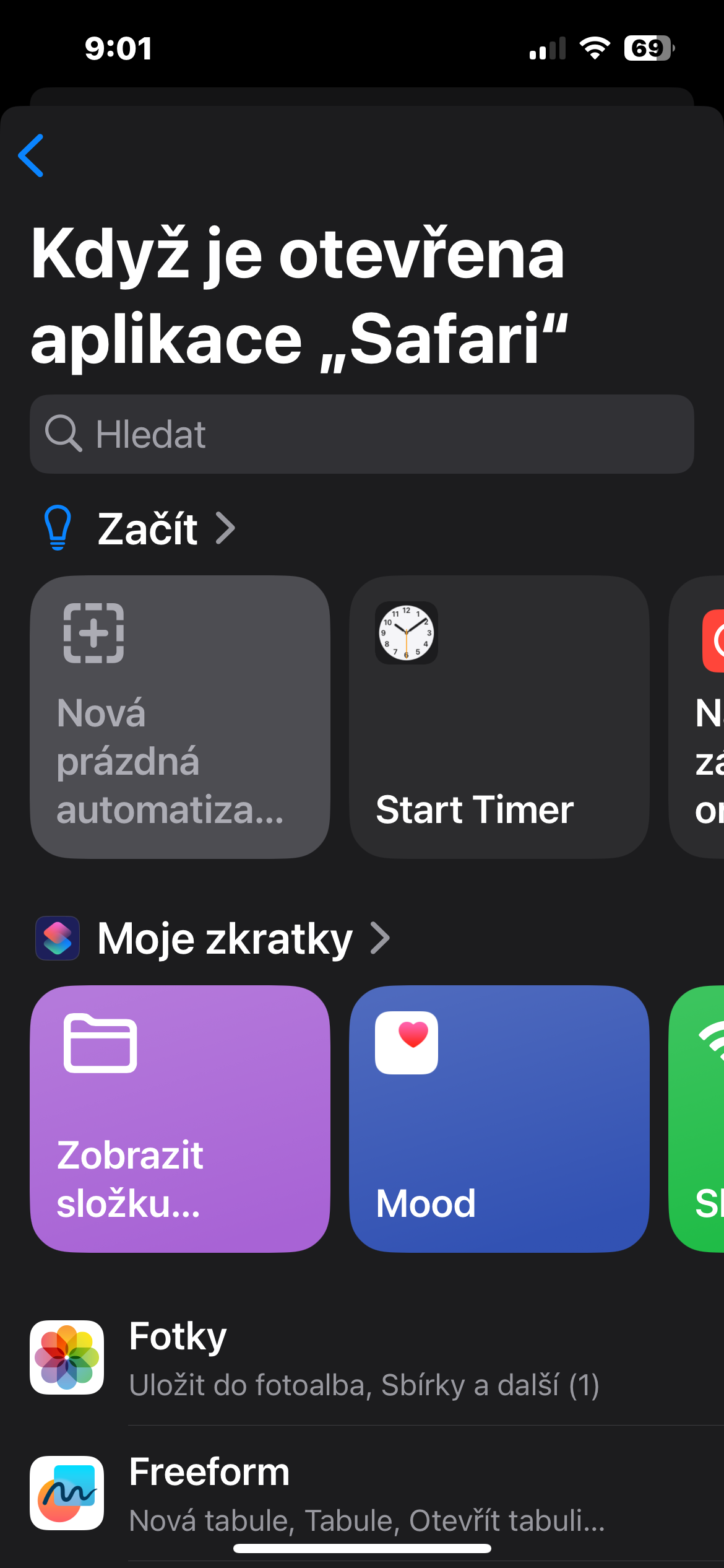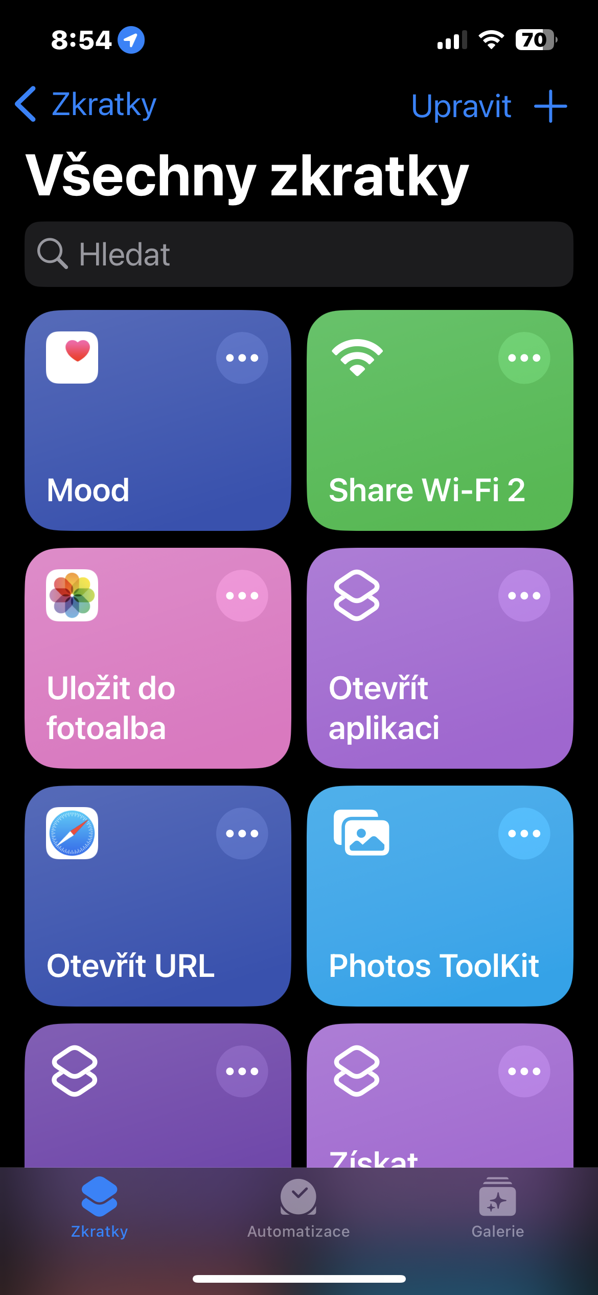 - Nejprve spusťte nativní Zkratky a klepněte na Automatizace.