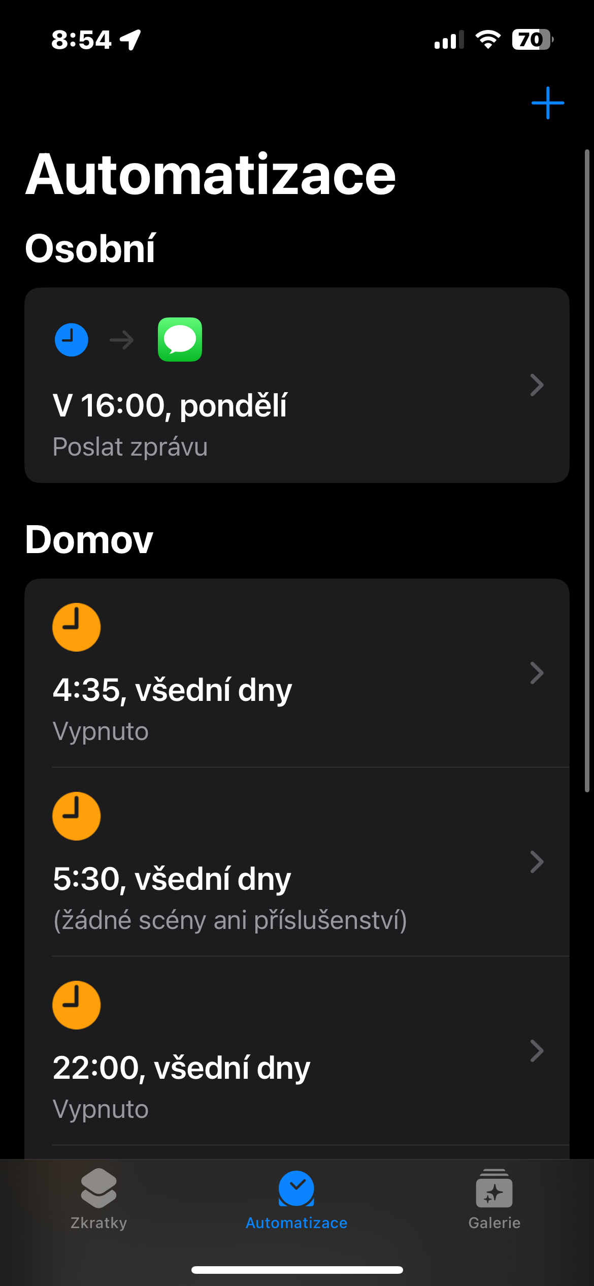 - Klepnutím na + zahajte tvorbu nové automatizace.