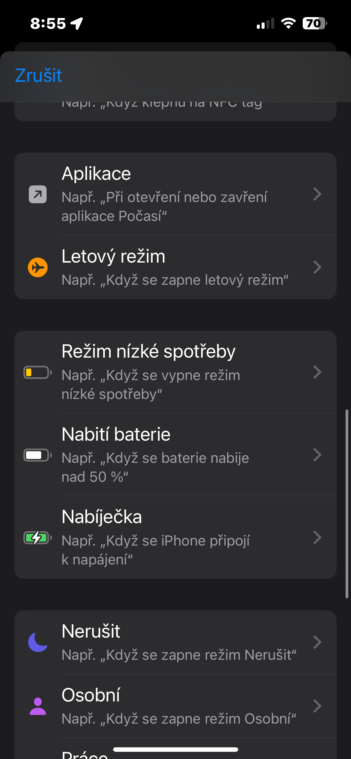 - Pokud máte iPhone s iOS 16, zvolte vytvoření osobní automatizace.