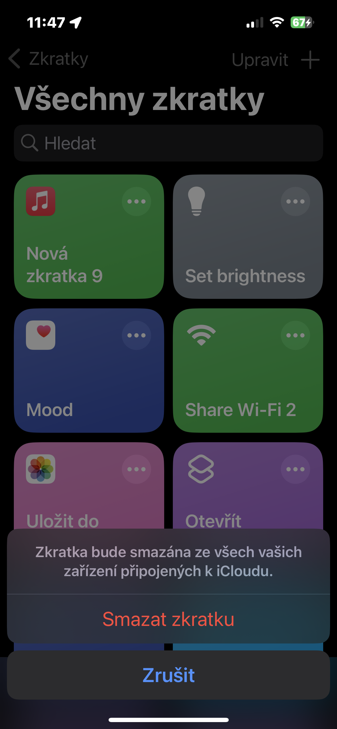 Nepotřebné zkratky můžete z vašeho iPhonu samozřejmě smazat – stačí dlouze podržet dlaždici s názvem zkratky v menu, které se vám zobrazí, klepnout na Smazat. Pokud chcete zkratku naopak sdílet, klepněte na ikonku tří teček v jejím pravém horním rohu. Na liště ve spodní části displeje klepněte na ikonku sdílení a poté zvolte preferovaný způsob sdílení.