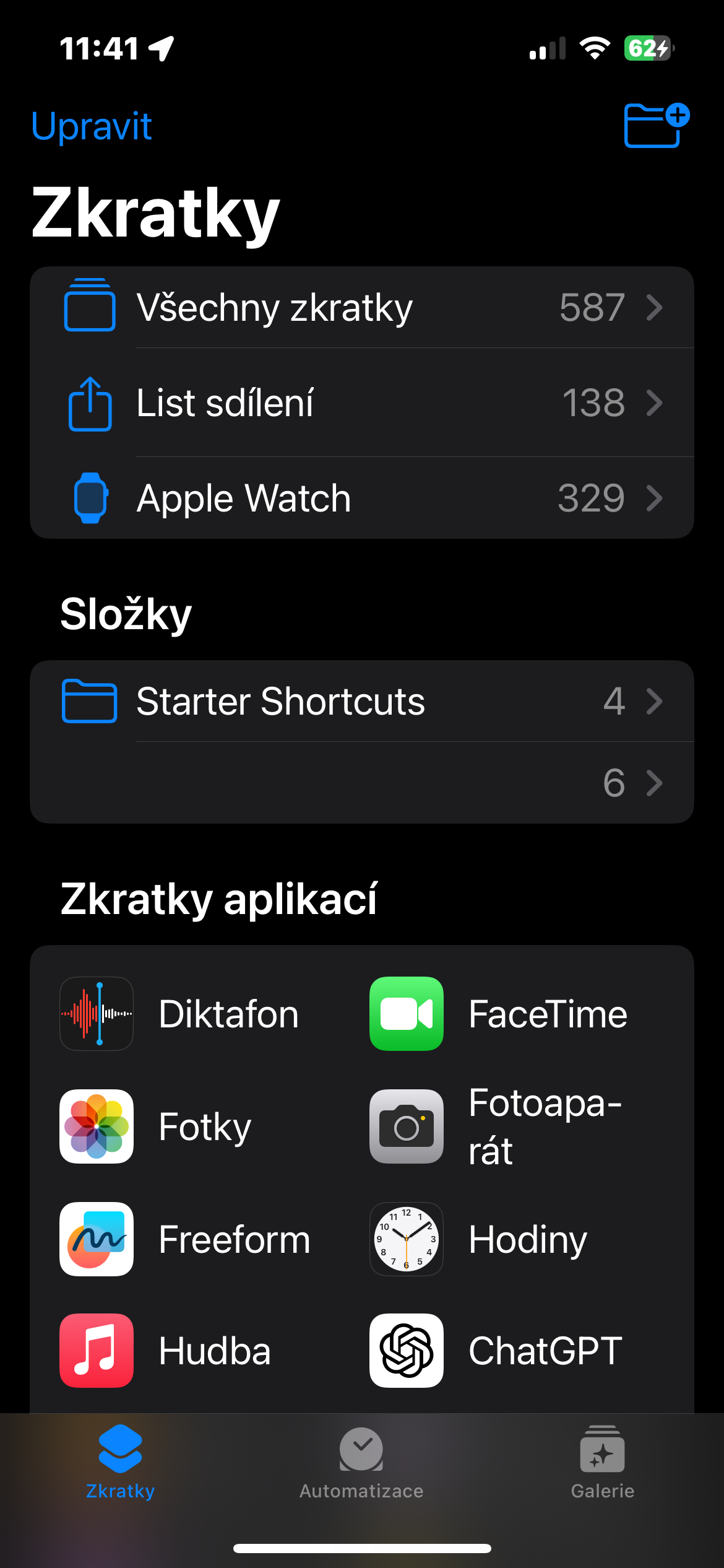 Pokud chcete konkrétní zkratku, která se v sekci Galerie nenachází, můžete si vytvořit vlastní od začátku. Jistě, není to úplně snadné, ale s trochou cviku se naučíte vytvářet stále lepší a lepší zkratky. Stačí spustit aplikaci Zkratky, klepnout na kartu Zkratky a vpravo nahoře klepnout na +. Následně podle potřeby přidáváte jednotlivé akce, nastavujete podmínky a zkratku ladíte. Pro začátek si vytvořte jednoduchou zkratku a prozkoumejte možnosti jejího přizpůsobení.