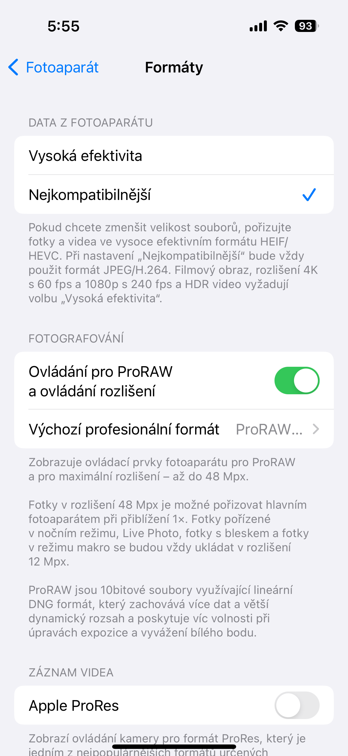 Já u svého iPhonu 14 Pro mám možnost HEIF Max. Jpg Max tam bohužel na výběr nemám