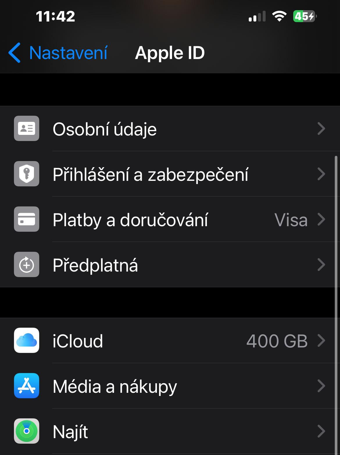 - Na iPhonu spusťte Nastavení a klepněte na panel s vaším jménem.