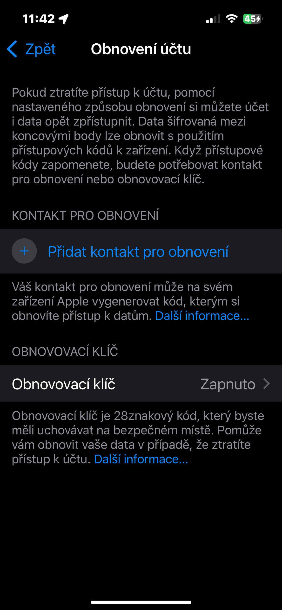 Tuto funkci zavedla společnost Apple spolu s příchodem operačního systému iOS 15. Díky ní můžete nastavit kontakt pro obnovení účtu, který vám pomůže zajistit, že budete mít vždy přístup ke svému účtu, i když zapomenete heslo Apple ID nebo přístupový kód zařízení. Kontakt pro obnovení účtu je někdo, kdo může ověřit vaši totožnost a pomoci vám obnovit přístup k účtu a všem vašim datům, pokud se vám někdy zablokuje.