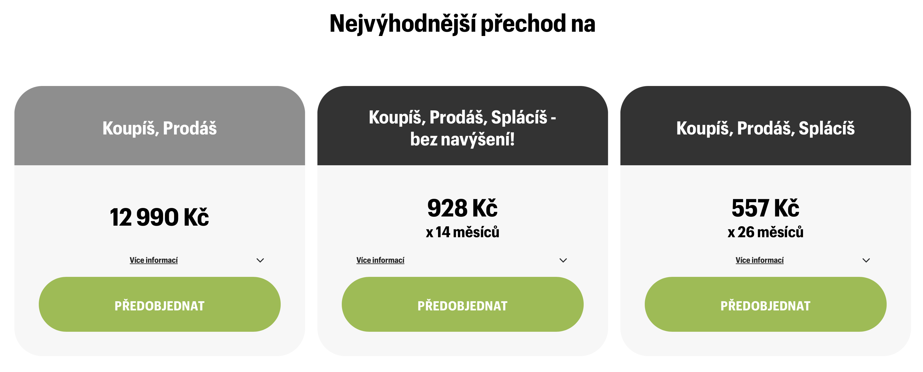 Celé kouzlo spočívá ve speciální službě Koupíš, Prodáš, Splácíš. Stačí při koupi iPhonu 15, 15 Plus, 15 Pro nebo 15 Pro Max zároveň prodat svůj stávající telefon. Právě díky tomu vás iPhone 15 Pro vyjde už na 557 Kč x 26 měsíců. Ceny jsou počítány při přechodu z loňského modelu, ale prodat samozřejmě můžete jakýkoli iPhone, a vlastně i jakýkoli telefon, tablet, notebook, chytré hodinky jiné značky, MacBook nebo dokonce herní konzoli. Stačí jen na odkazu níže zadat zařízení, které aktuálně vlastníte, a okamžitě zjistíte cenu sobě na míru.
