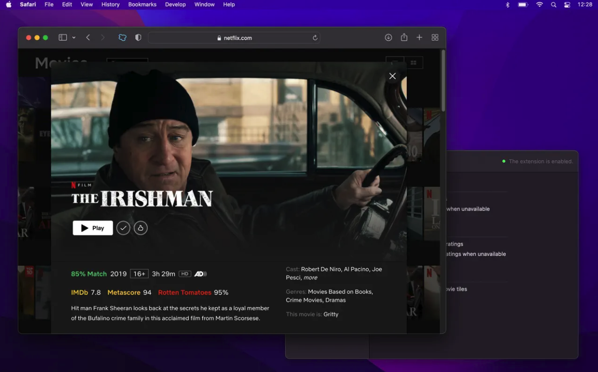 Popcorn je skvělé a velmi užitečné rozšíření pro všechny, kteří milují sledování nejrůznějších seriálů a filmů na streamovací službě Netflix. S pomocí tohoto rozšíření se budete moci kdykoliv okamžitě dozvědět, jakého hodnocení se vámi vybraný film nebo pořad na Netflixu dočkal na webu IMDb nebo Metascore. Rozšíření je bez reklam a nevyužívá žádné sledovací nástroje.