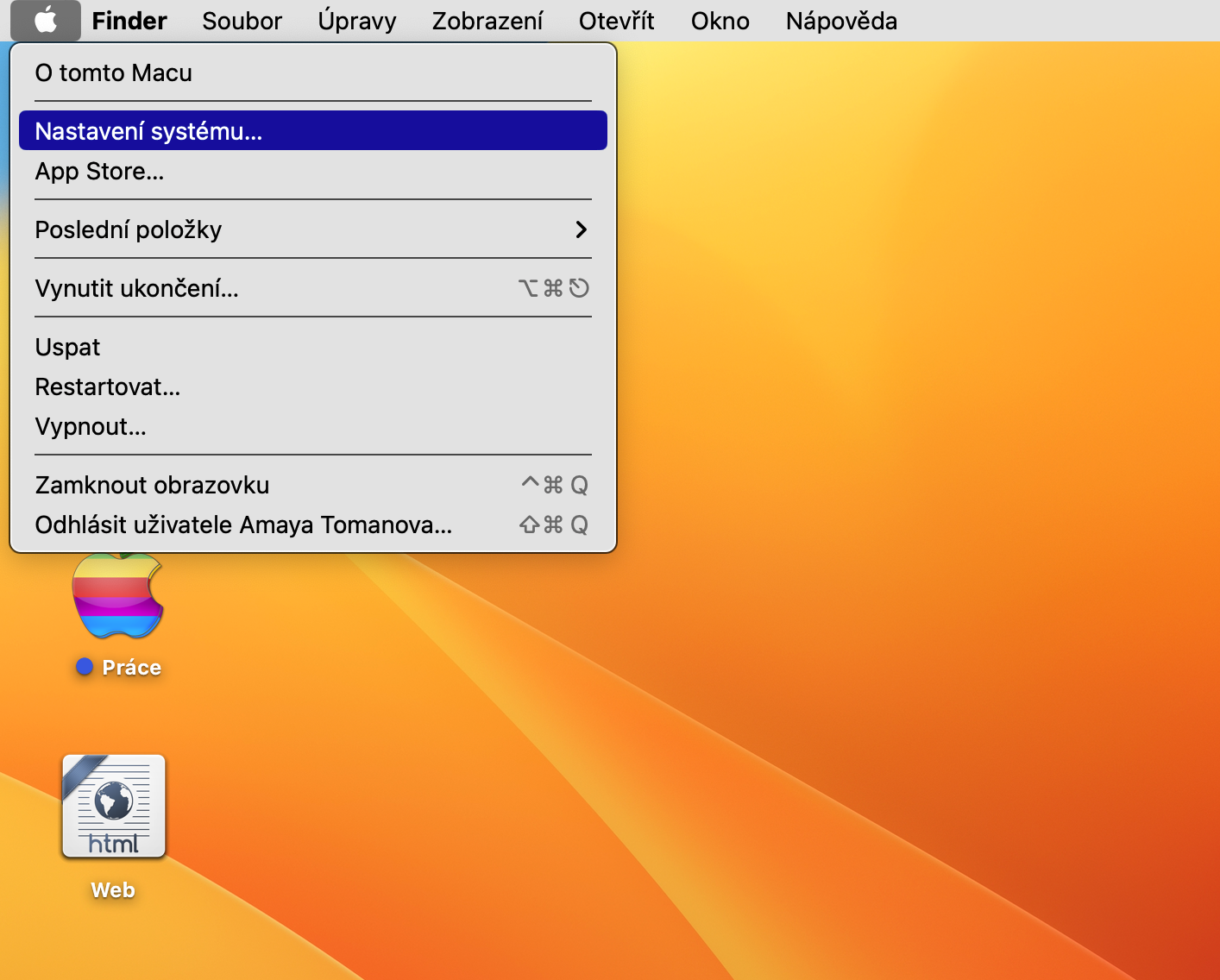- V levém horním rohu obrazovky vašeho Macu klikněte na menu -> Nastavení systému.