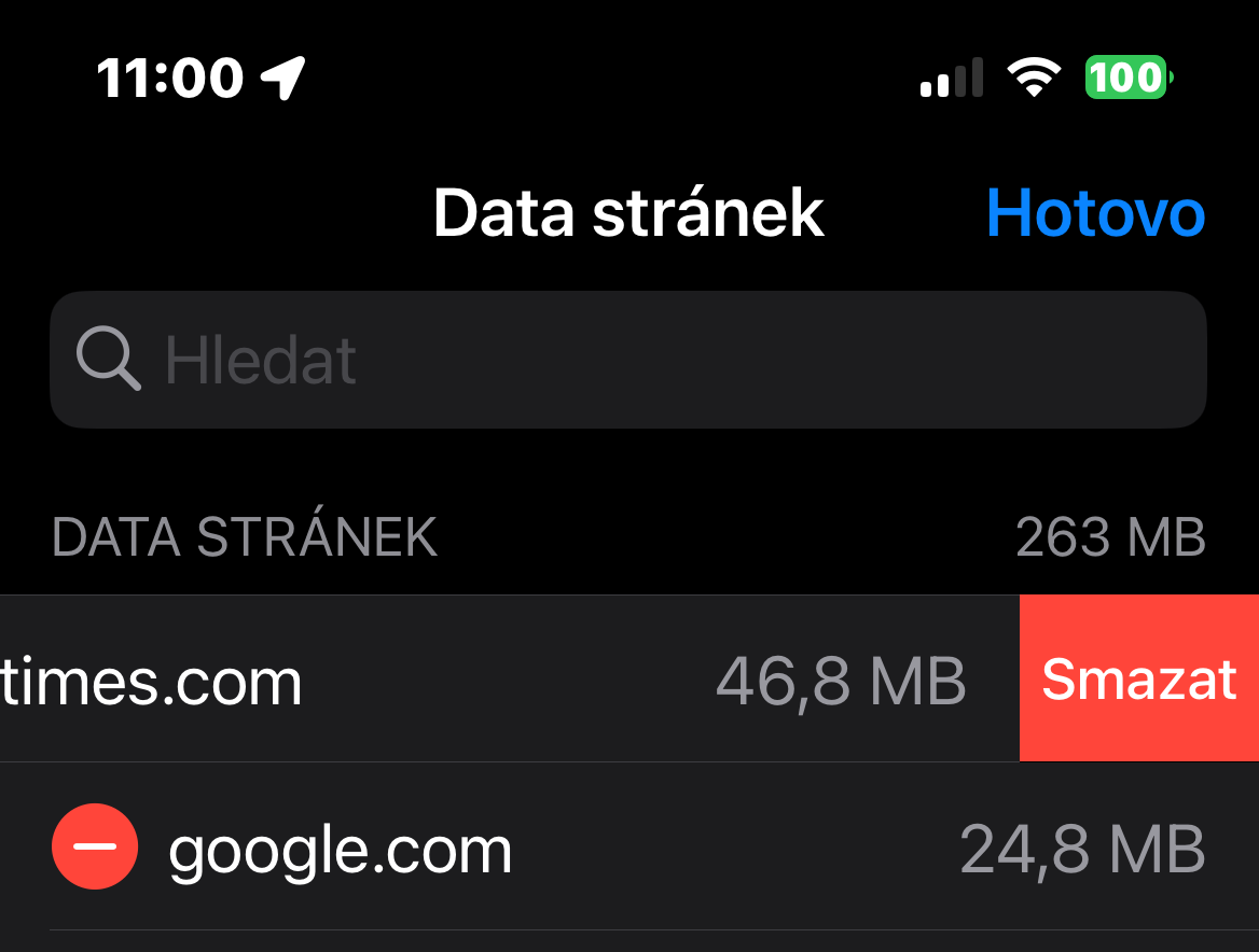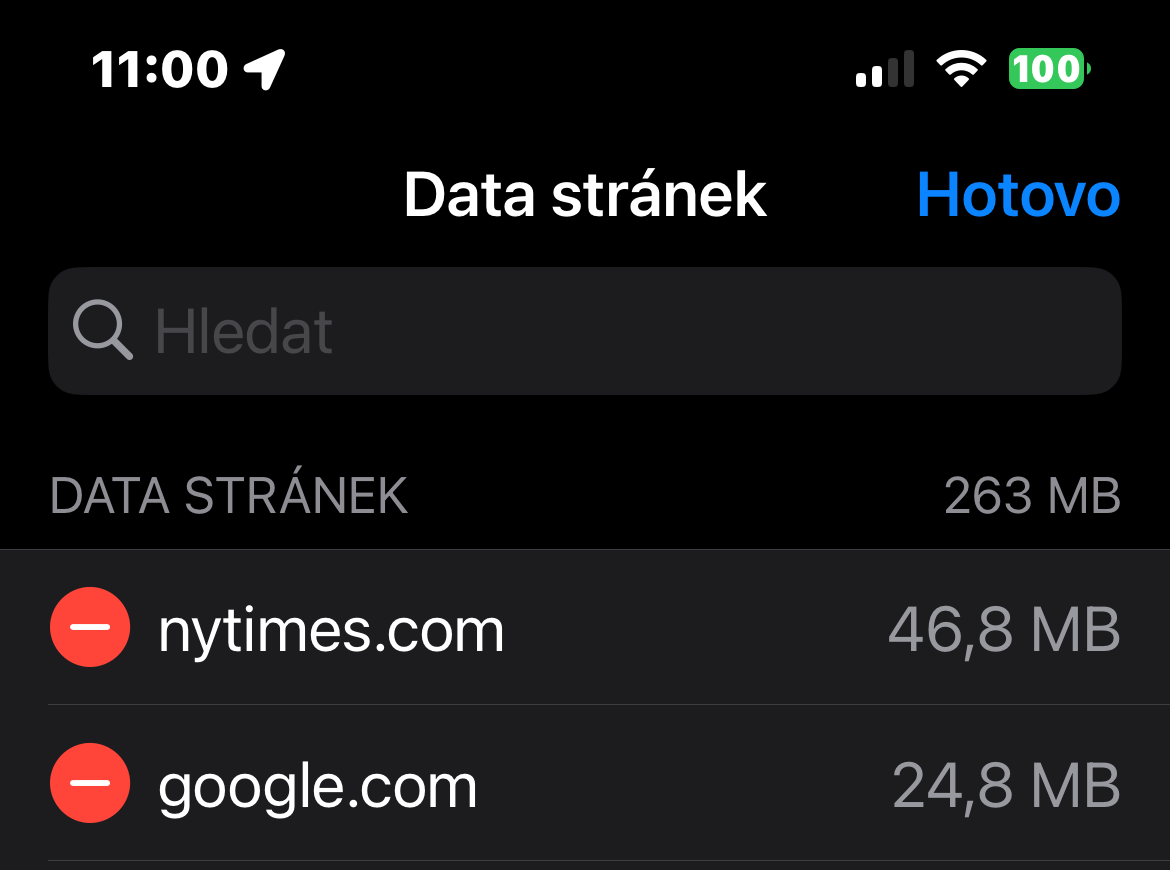 Některé webové stránky, které používáte v Safari, spotřebovávají více dat než jiné a často se jedná o ty, které často navštěvujete. Naštěstí můžete snadno vymazat data jedné nebo více webových stránek. Pro smazání dat u jednotlivých stránek spusťte na iPhonu Nastavení -> Safari -> Pokročilé. Klepněte na Data stránek, vpravo nahoře klepněte na Upravit, a u příslušné stránky klepněte na tlačítko pro odstranění.