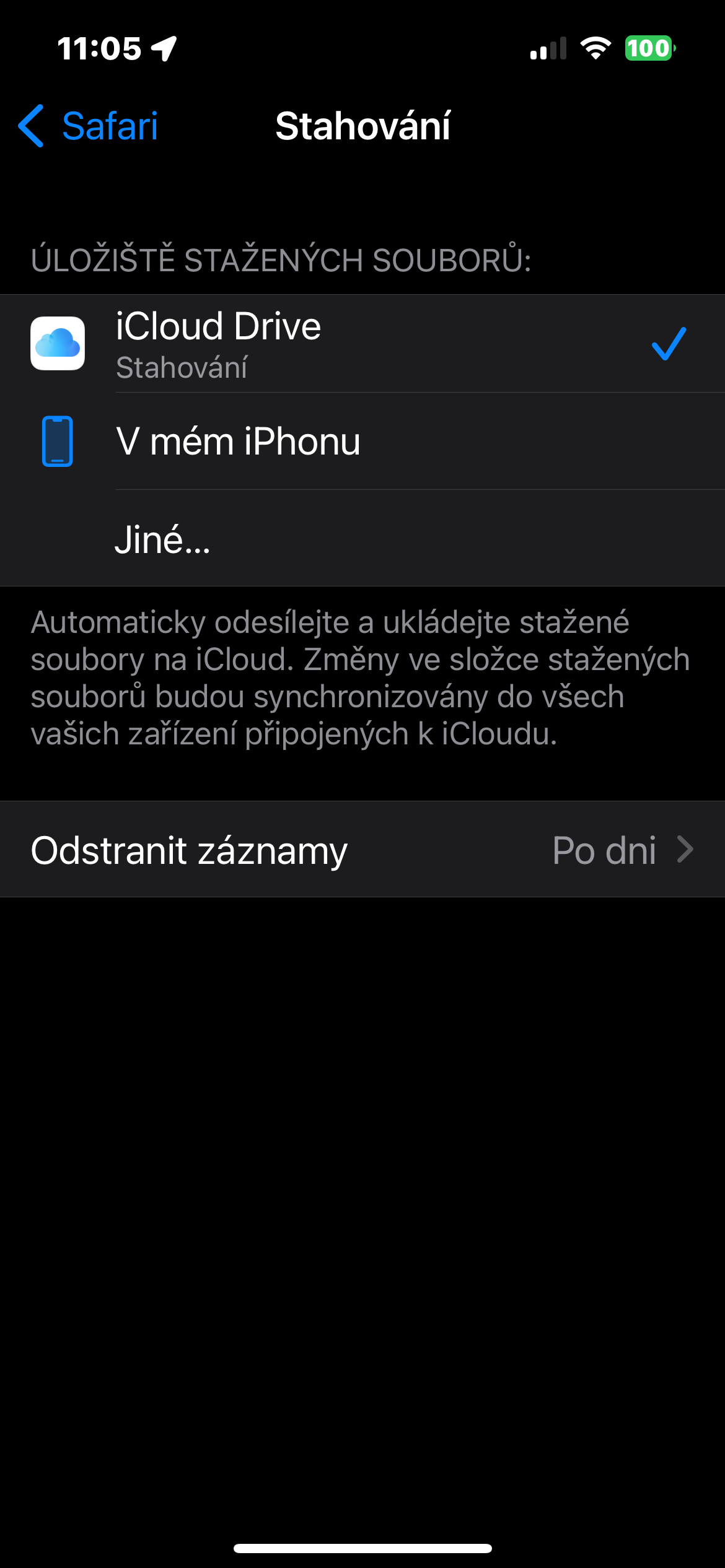 Můžete si vybrat, zda chcete ukládat soubory do iCloudu nebo do iPhonu. Pokud zvolíte druhou možnost, můžete si všimnout, že Safari spotřebovává více dat, než byste si přáli. Na iPhonu spusťte Nastavení -> Safari. Klepněte na Stahování v sekci Obecné a poté namísto ukládání stahování do vašeho iPhonu zvolte iCloud Drive.