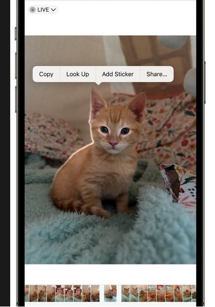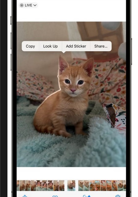 Funkci zkopírování objektu na fotce známe již z předchozí verze operačního systému iOS. Nyní přibyla i možnost vytvoření samolepky z fotky. Klepněte na objekt a podržte jej, dokud se neozobrazí animace po jeho obvodu. Poté v menu, které se vám objeví nad objektem, klepněte na Přidat nálepku.