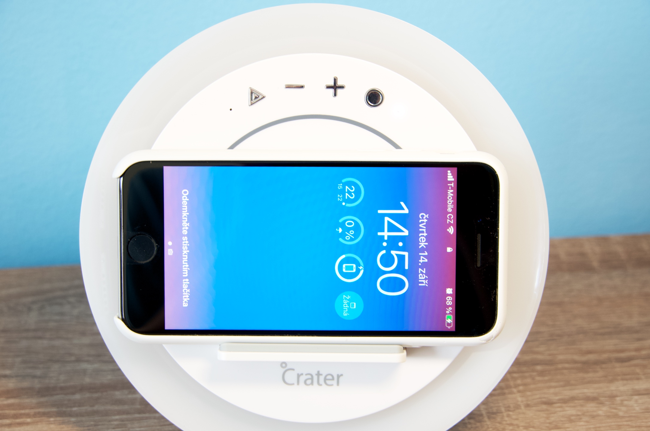 Crater9 je vybaven přihrádkou pro bezdrátové nabíjení smartphonu na šířku, což je jako šité na míru režimu StandBy iOS 17. Po umístění kompatibilního telefonu je dobíjení zahájeno prakticky okamžitě a probíhající proces začne indikovat červeně svítící dioda napravo. Platí, že ideální pozice, zajistí také ideální průběh nabíjení.