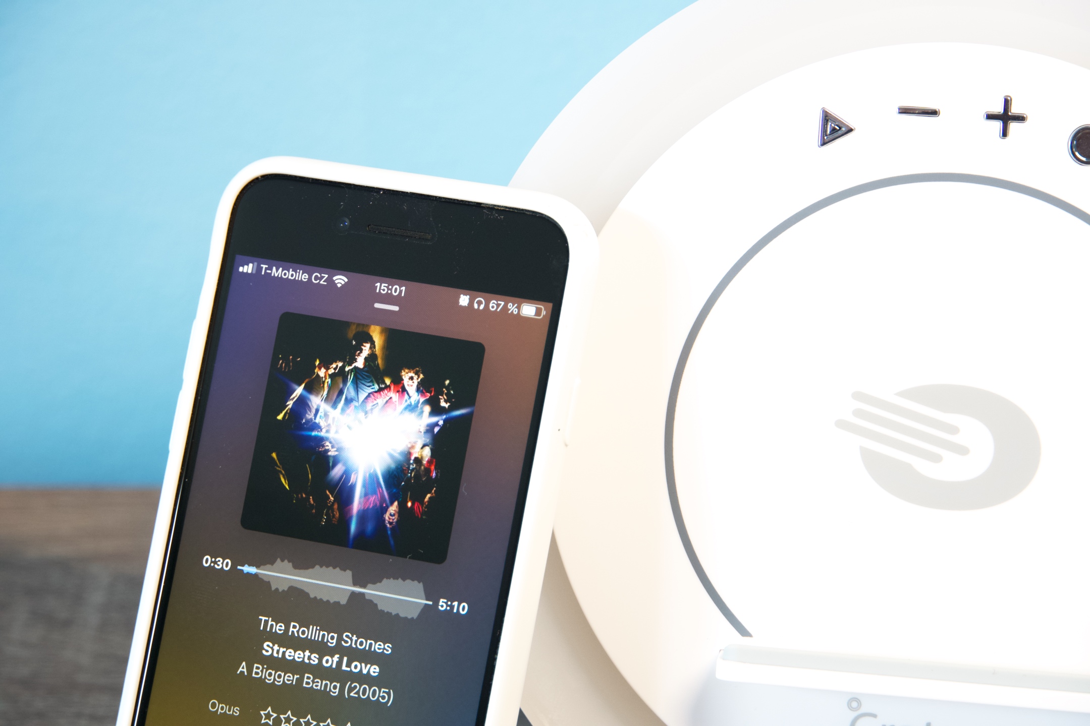 Osobně považuji za největší přednosti zařízení design a zvukové vlastnosti. Kruhový vzhled se sice nemusí líbit každému, ale rozhodně nezapře originalitu a reproduktor, přestože je trochu netypicky umístěn v zadní části, poskytuje čistý zvuk, přičemž se není třeba obávat přidání hlasitosti. Ve výsledku tak výkon pokryje skutečně celou místnost, díky čemuž bude poslech srozumitelný, i když třeba zrovna umýváte nádobí. Svícení je příjemný bonus, který v ložnici oceníte při vstávání, v dětském pokoji se bude hodit „k odhánění strašidel“ a v pracovně či obýváku svými barvami přispěje k navození příjemné atmosféry.