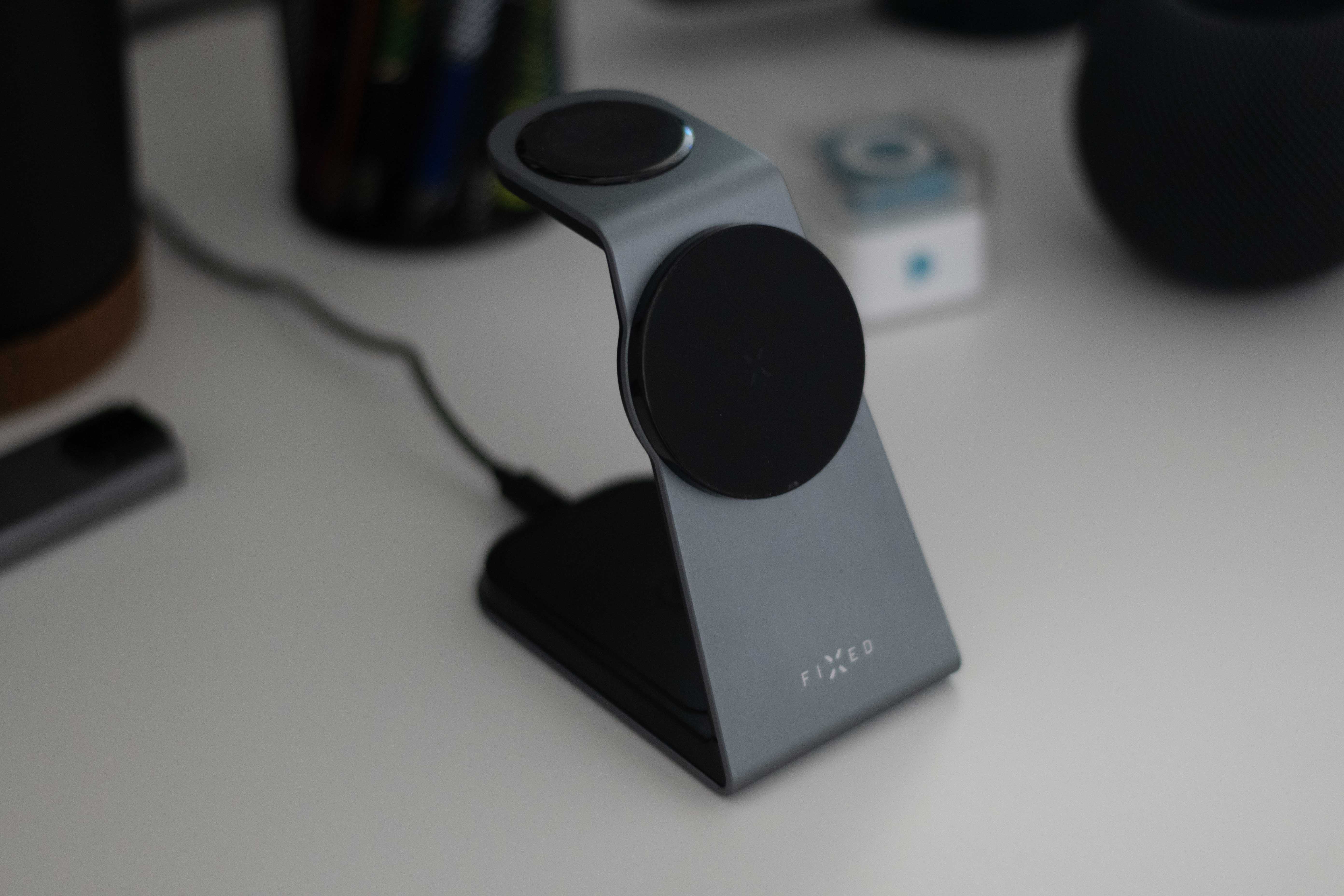 Nabíječka je tvořena hliníkovým tělem ve vesmírně šedé barevné variantě s integrovanými nabíjecími ploškami pro AirPods, smartphony a Apple Watch. Místo pro AirPods je umístěno v základně nabíječky, smartphone nabijete skrze magnetickou plošku na vzpřímeném ramenu a Apple Watch pak přes magnetický puk umístěný na vrcholu ramena, který je situován rovnoběžně se základnou. Obecně se pak dá říci, že designově je nabíječka bez jakékoliv nadsázky tvořena skoro tak, jako kdyby jí tvořil samotný Apple. Svým způsobem totiž připomíná například dřívější stojany pro iMacy. Kalifornskému gigantovi je ale nabíječka blízká třeba i použitým materiálem či samozřejmě barvou. Do vašeho Apple světa tedy zapadne naprosto dokonale a to i díky prvotřídnímu zpracování, které je však už u produktů z dílny FIXED tak nějak samozřejmostí.