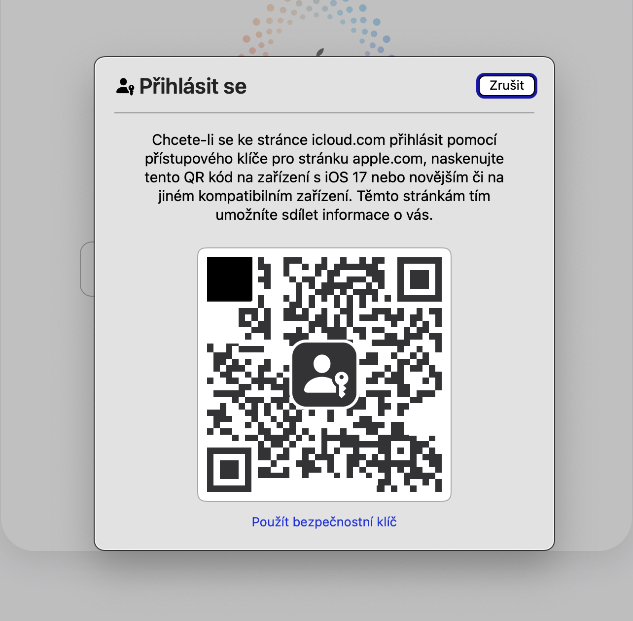 Pokud na iPhonu používáte iOS 17, můžete tuto funkci začít používat hned. Stačí přejít na jakoukoli přihlašovací stránku s doménou apple.com nebo icloud.com, a po zadání e-mailové adresy zvolit možnost přihlášení za pomoci přístupového klíče.