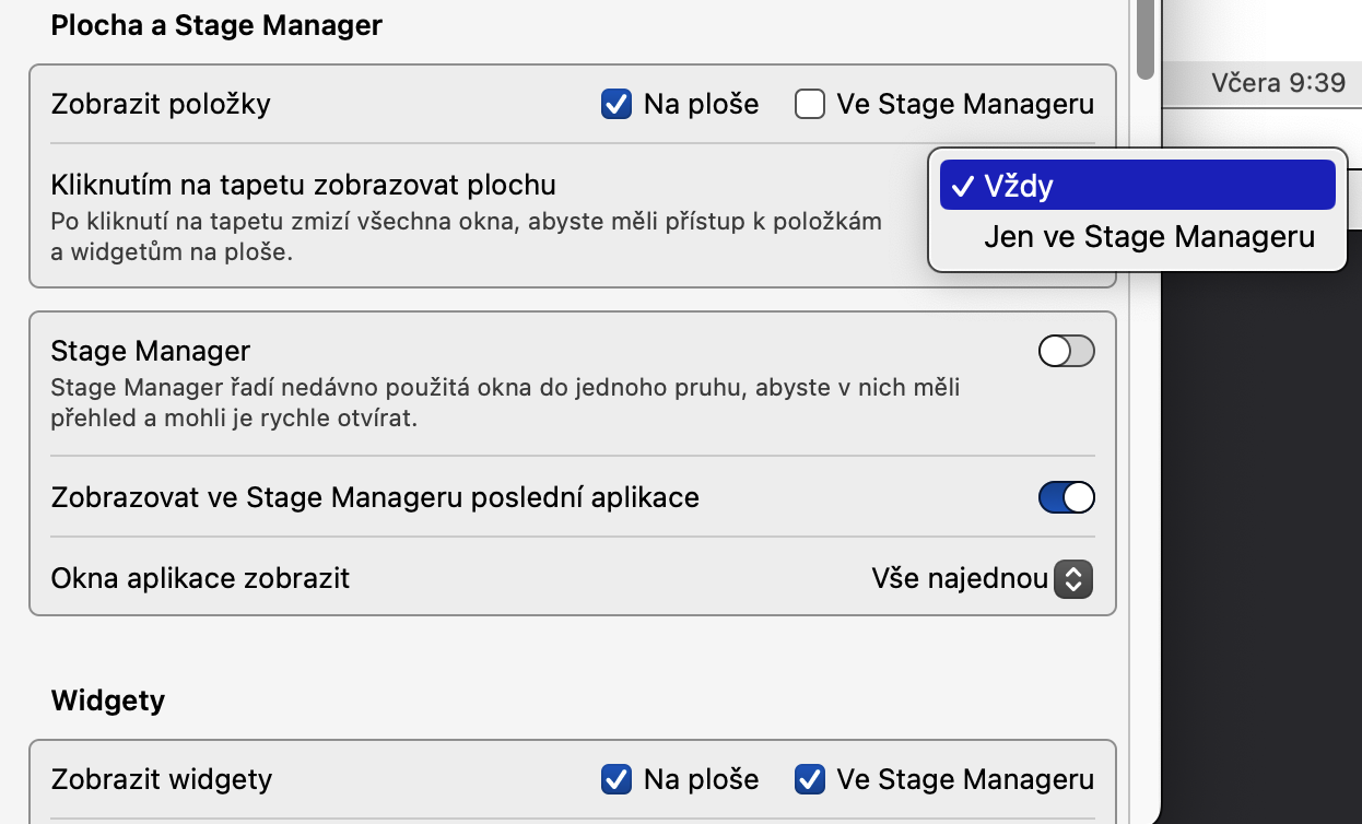 Pro rychlé skrytí oken aktivních aplikací jste v předchozích verzích operačního systému macOS museli používat klávesové zkratky, tomu je ale s příchodem macOS Sonoma konec. Ve výchozím nastavení vám pro skrytí aktivních oken a zobrazení plochy postačí kliknutí kamkoliv na plochu. Pokud byste tuto funkci chtěl zrušit, klikněte na menu -> Nastavení systému -> Plocha a Dock, a v sekci Kliknutím na tapetu zobrazovat plochu vyberte požadovanou variantu.