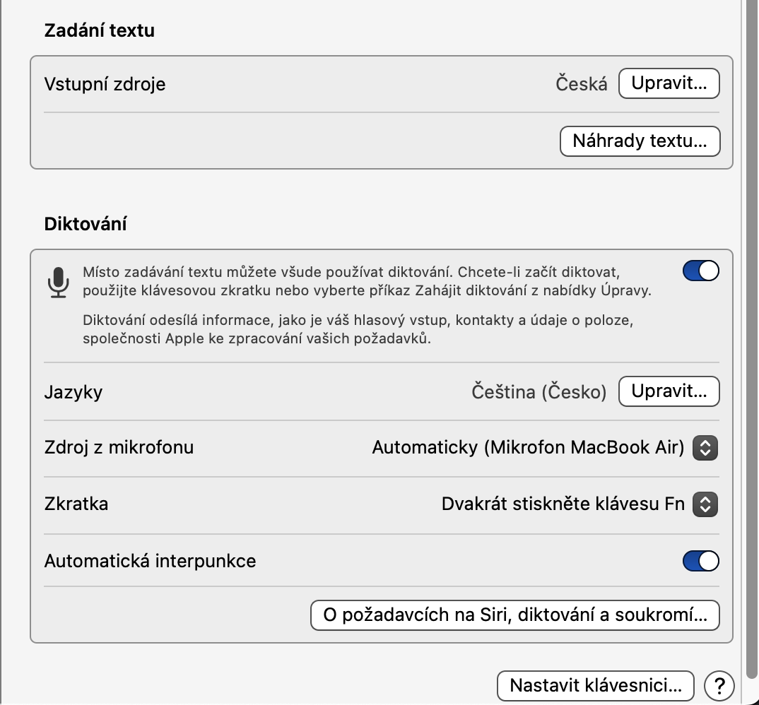 Ve starších verzích systému macOS jste si museli vybrat, zda chcete psát na klávesnici, nebo zapnout režim diktování. V operačním systému macOS Sonoma si však nyní můžete užívat to nejlepší z obou možností a používat je současně. Chcete-li tuto funkci aktivovat, přejděte do Nastavení systému -> Klávesnice a zapněte přepínač Diktování vedle ikony mikrofonu.