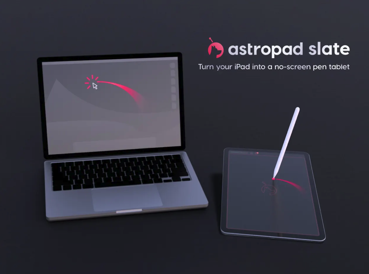 iPad můžete také používat jako tablet s perem v aplikacích pro Mac, které podporují kreslení, skicování a další kreativní práci. Aplikace Astropad Slate v podstatě promění iPad v kreslicí tablet bez obrazovky, takže se můžete soustředit na práci na Macu. Mac a iPad lze vzájemně propojit pomocí Wi-Fi, sítě Peer-to-Peer nebo vhodného kabelu. Pro správné fungování aplikace je zapotřebí iPad s operačním systémem iPadOS 15 a novějším a Mac s operačním systémem macOS 11 a novějším.