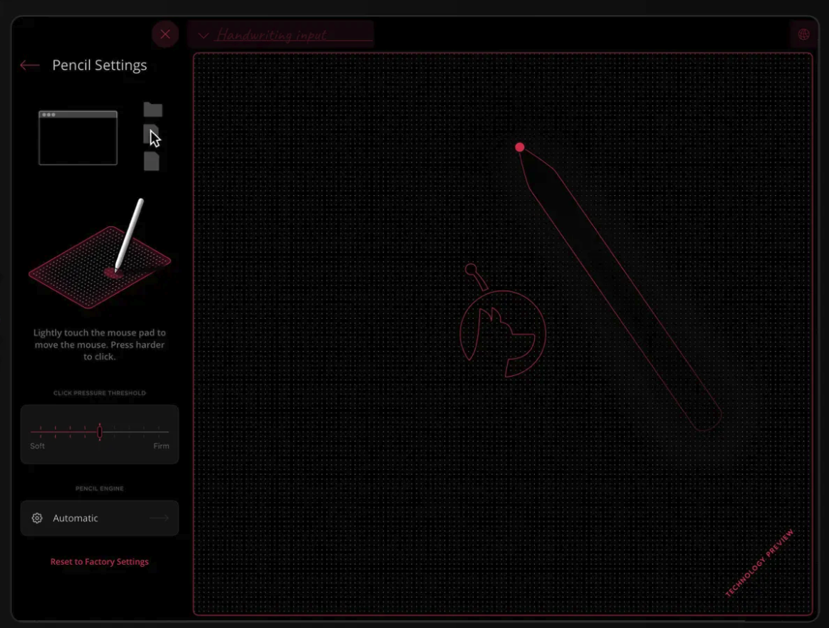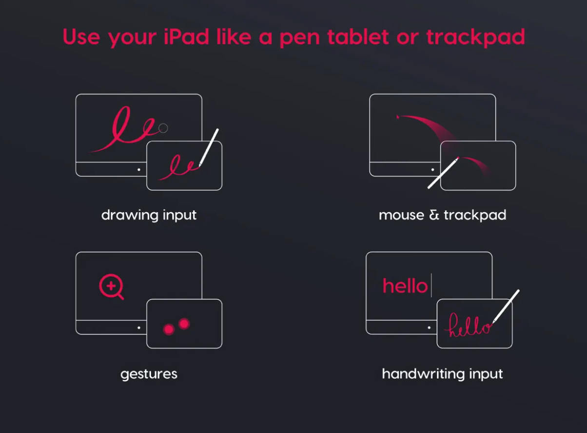 Existuje několik funkcí na Macu, které lze provádět pomocí Apple Pencil. Apple Pencil může například fungovat jako ovládání kurzoru, přičemž klepnutí na obrazovku slouží jako kliknutí. Ruční psaní provedené na iPadu se na Macu převede na psaný text. Astropad Slate podporuje na novějších iPadech hover gesta Apple Pencil, na starších iPadech je k dispozici možnost simulovaného hover gesta, a navíc můžete používat dotyková gesta dvěma prsty pro akce, jako je posouvání a zvětšování.
