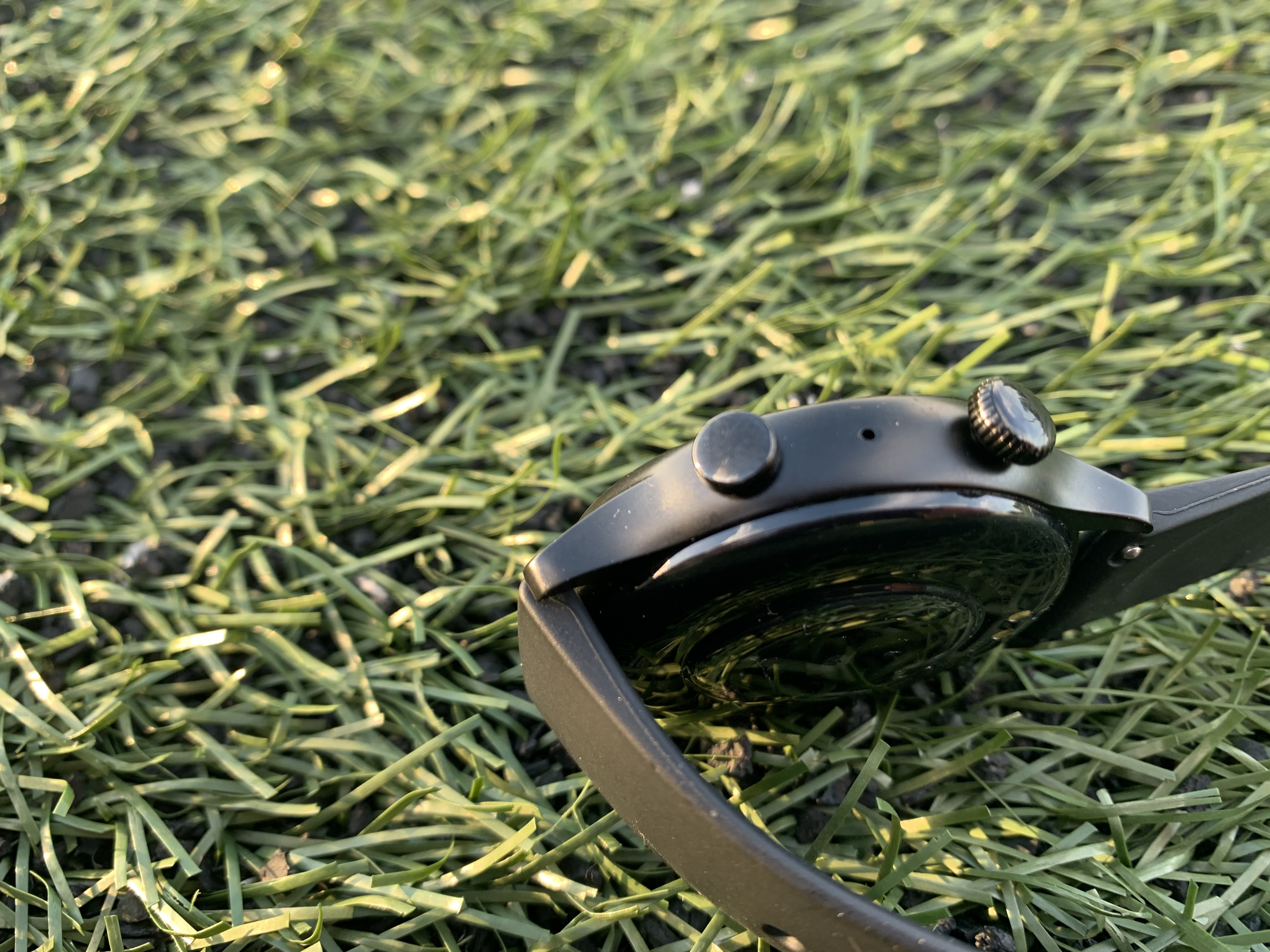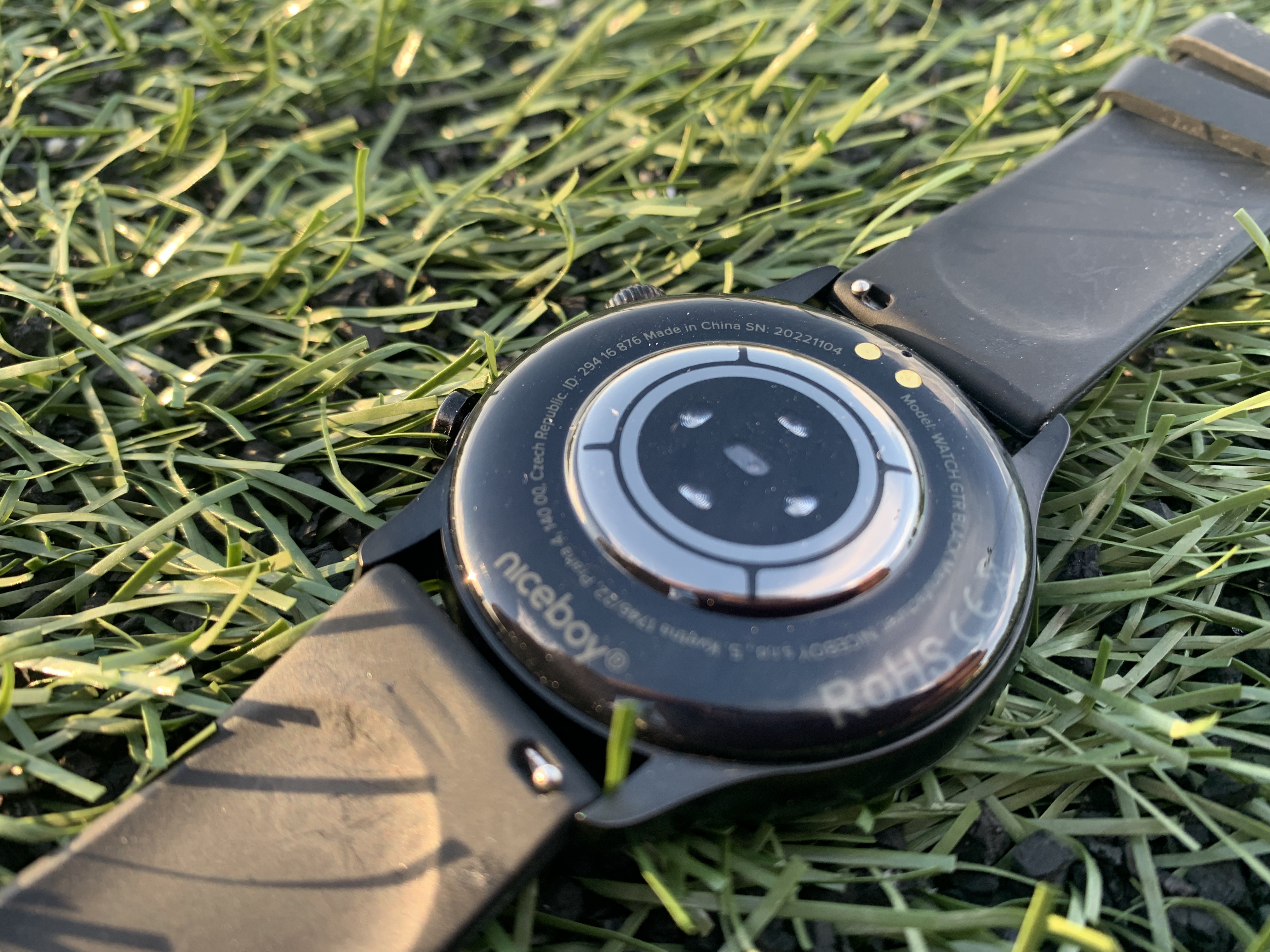 Jak uvádím výše, hodinky mají na poměr své cenové kategorie opravdu povedený design. Tělo je z hliníku a pásek klasicky z pryže. Typ zapojení je zde 22 mm Quick Release, takže pásky můžete měnit. Minimální obvod zápěstí je 16,5 cm. Nejvyšší pak 22 cm. Na boční straně hodinek vidíte dvě tlačítka. Horní slouží ke vstupu do menu, dolní zapíná a vypíná aktivity. Pohyby prsty po displeji pak budete zobrazovat notifikace a podobně. Hodinky mají též reproduktor. Lze s nimi telefonovat, pokud máte v dosahu Bluetooth smartphone. Spodní strana hodinek pak pochopitelně patří všelijakým čidlům.