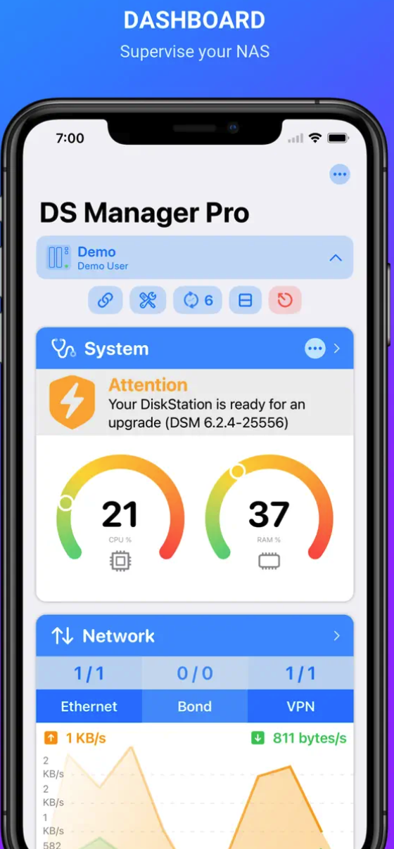 Používáte NAS od Synology? Aplikace DS Manager Pro vám pomůže mít přehled o všem, co souvisí s provozem vašeho NAS serveru. Aplikace DS Manager Pro umožňuje snadný dohled nad zařízením Synology NAS (DSM) prostřednictvím kontroly síťového provozu a připojení, stavu systému, stavu a kapacity úložiště, protokolů, úloh, zálohování a mnoha dalších funkcí. DS Manager Pro nabízí také kompatibilitu se Zkratkami Siri.