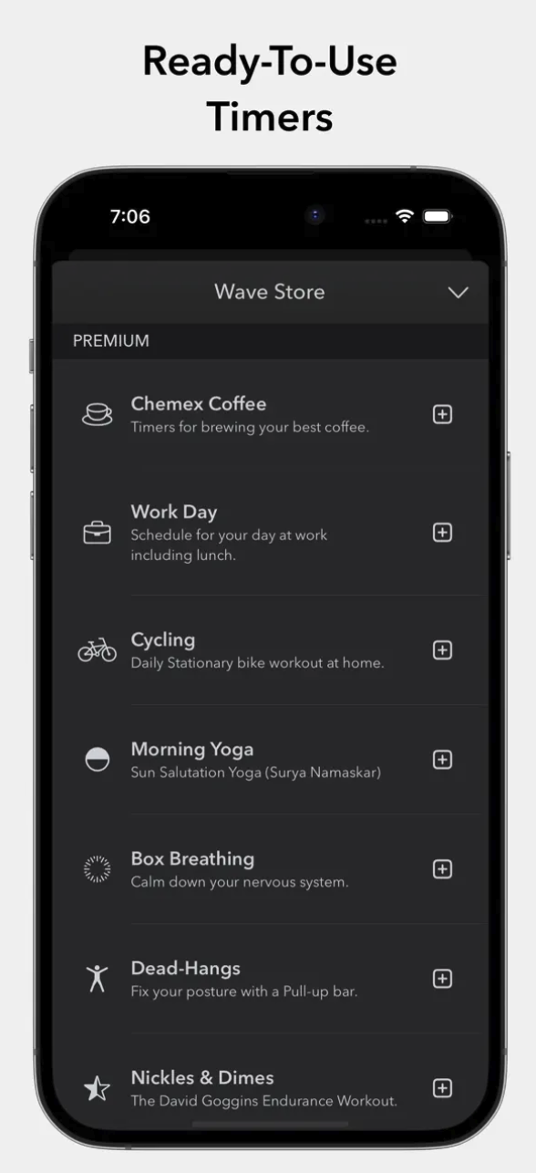 TimeWave je aplikace, která vám nabídne možnost vytvářet a přizpůsobit si nejrůznější časomíry, a to na opravdu pokročilé úrovni. Ať už používáte minutky při vaření, v rámci práce s technikou Pomodoro nebo třeba pro cvičení, TimeWave vás nezklame. Nabízí možnost vytvoření více navazujících časomír a nastavení nejrůznějších podmínek.