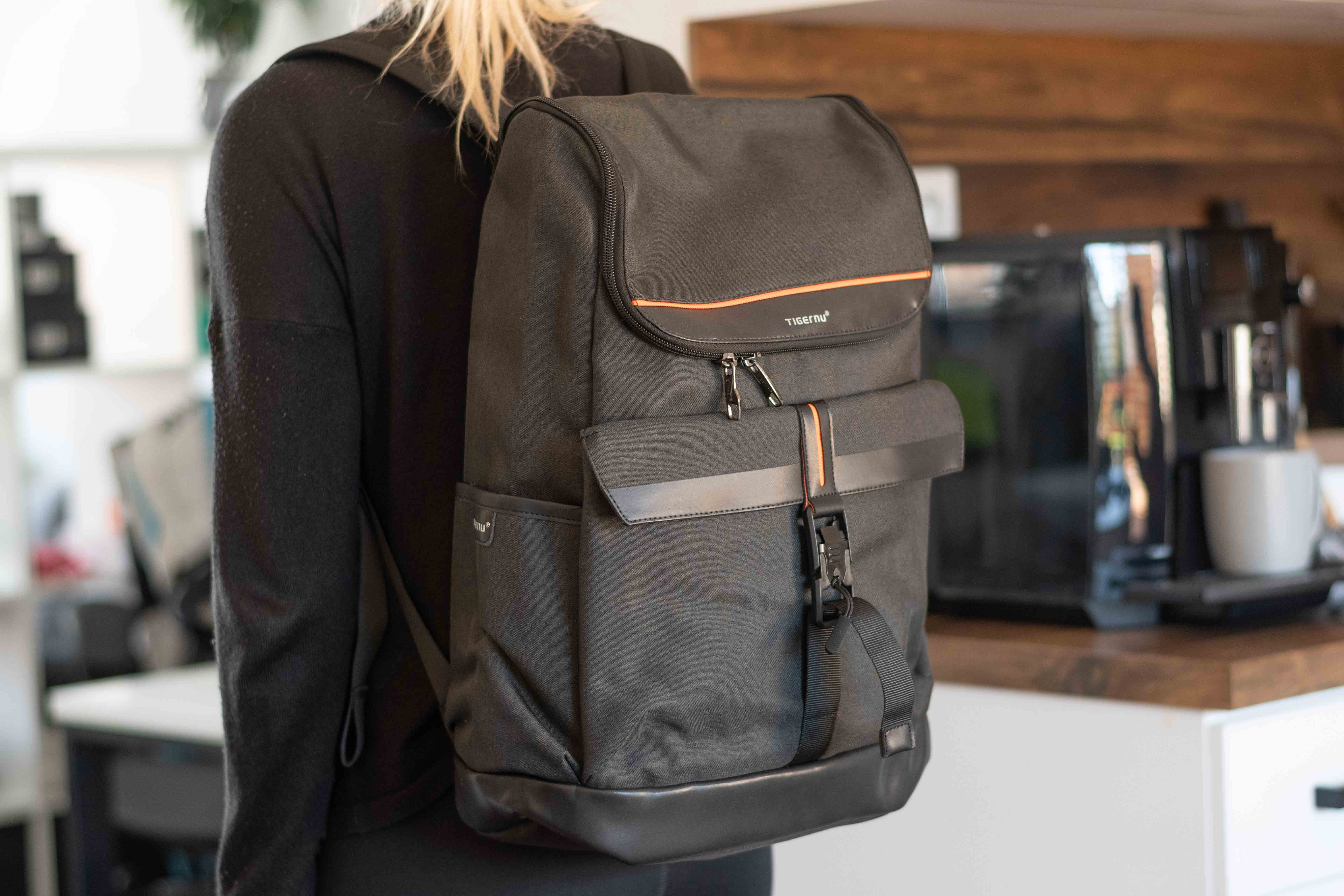 Batohy Tigernu se vyznačují svým minimalistickým designem, přičemž model T-B9203 není v tomto směru žádnou výraznou výjimkou. Jednoduchý tvar v kombinaci s černými materiály a tmavými kvalitně působícími zipy je toho ostatně důkazem. Jediné, co mi v tomto směru na batohu nesedí, jsou oranžové proužky na přední straně, které jsou na můj vkus až moc výrazné. Jedná se však o můj ryze subjektivní názor a zatímco mě se tento prvek nelíbí, vám samozřejmě může, protože do jisté míry nudný design výrazná oranžová rozbíjí.
