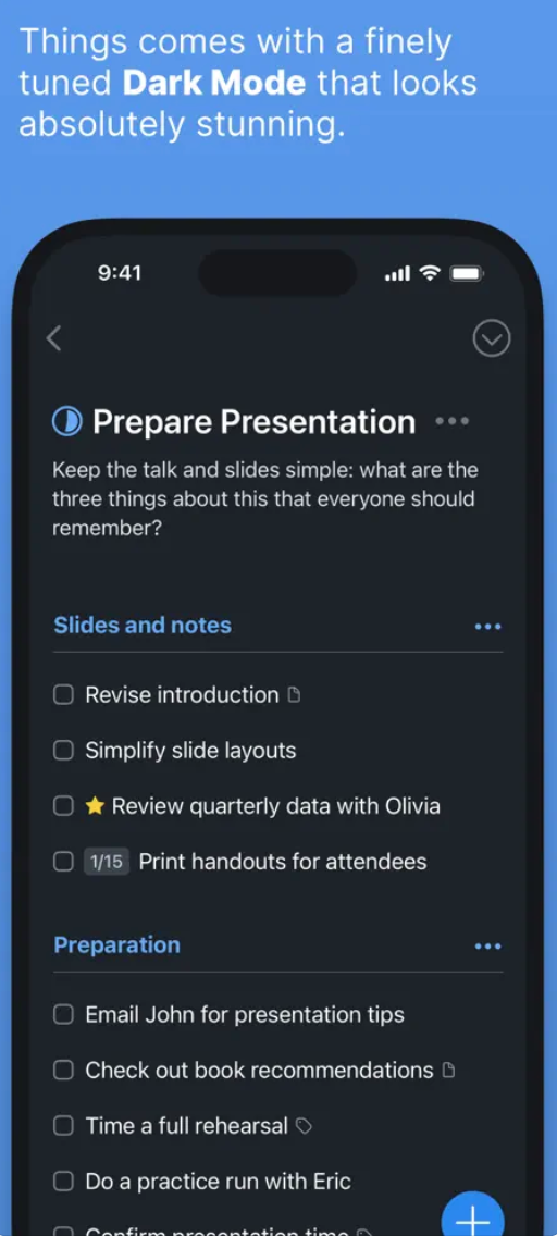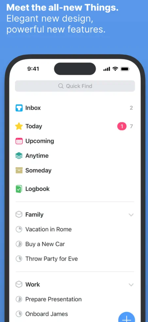 Things je populární a neustále se rozvíjející úkolová aplikace, která nabízí funkci tvorby a správy seznamů úkolů, projektů a plánování. Můžete si v ní nastavit připomínky včetně těch opakovaných, používat štítky, chytré seznamy a mnohem více.
