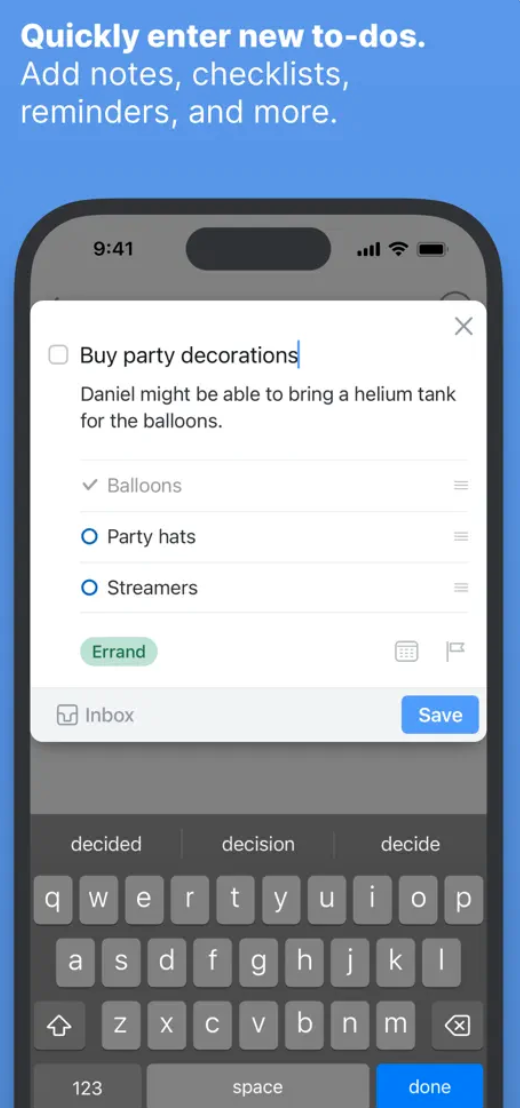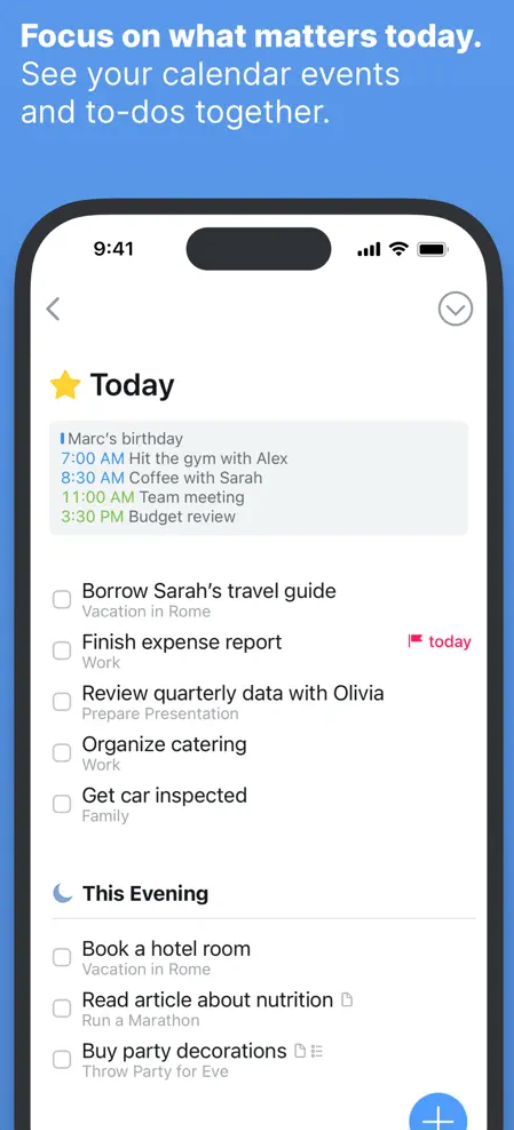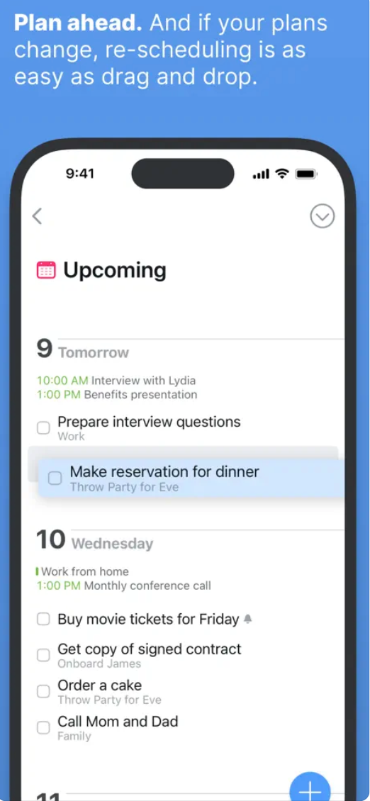 Any.do je populární úkolová aplikace, která navíc nabízí také synchronizaci s vaším kalendářem. Nabízí spoustu možností přizpůsobení i zobrazení, možnost nastavení připomínek včetně opakovaných, možnost spolupráce a sdílení seznamů úkolů, a v neposlední řadě je multiplatformní, takže ji můžete využívat na více Apple zařízeních najednou.