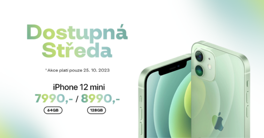 Obchod DostupnýiPhone.cz se zaměřuje na prodej použitých, avšak plně funkčních a vizuálně prakticky nových Apple produktů, které je u něj možné získat za velmi nízké ceny. Ty navíc čas od času srazí oblíbenou akcí Dostupná středa, která přináší slevy na různé modely iPhonů. Na tuto středu byly pro akci vybrány konkrétně iPhone 12 mini a to buď se 64GB, nebo 128GB úložištěm v různých barvách. Oba pak budou k dispozici s kapacitou 64GB za 7 990 Kč a 128GB za 8 990 Kč.