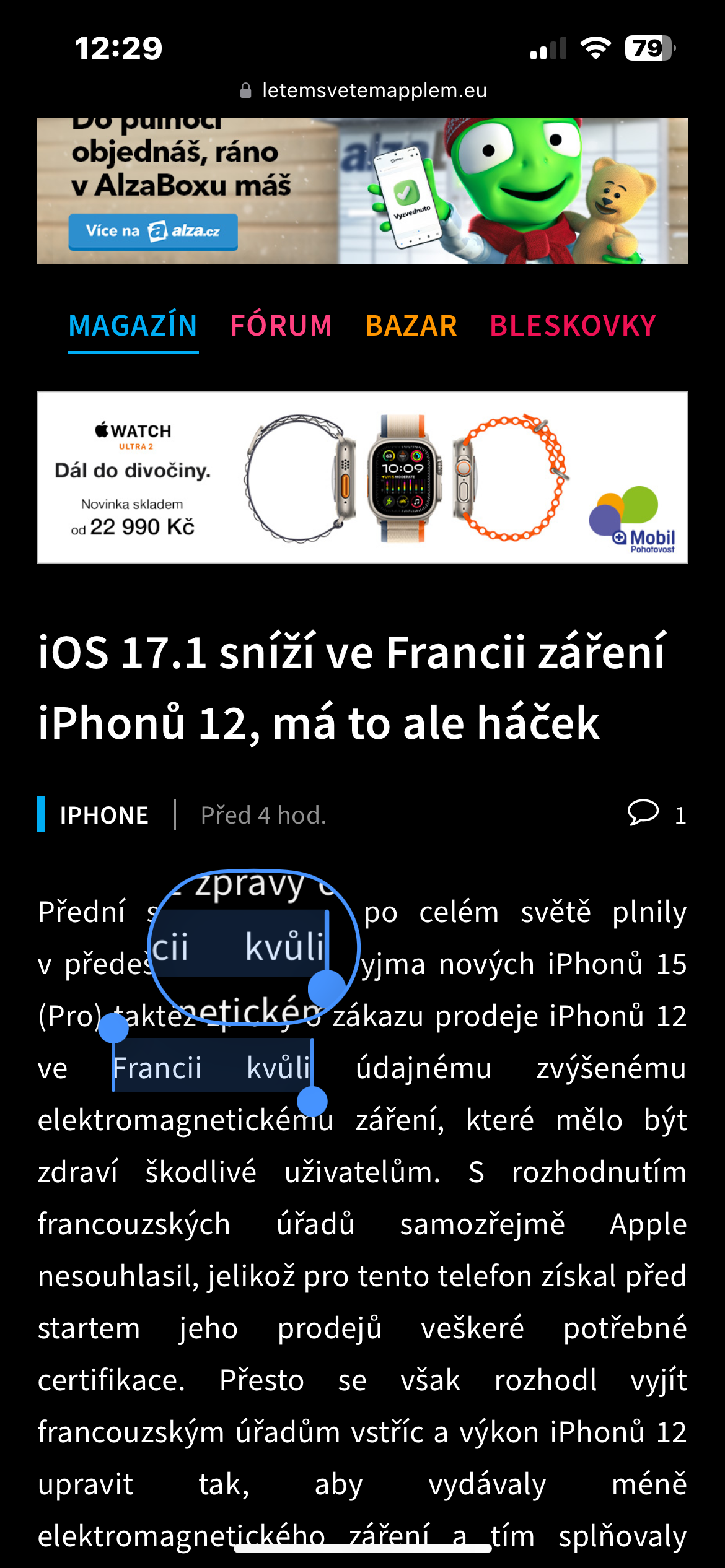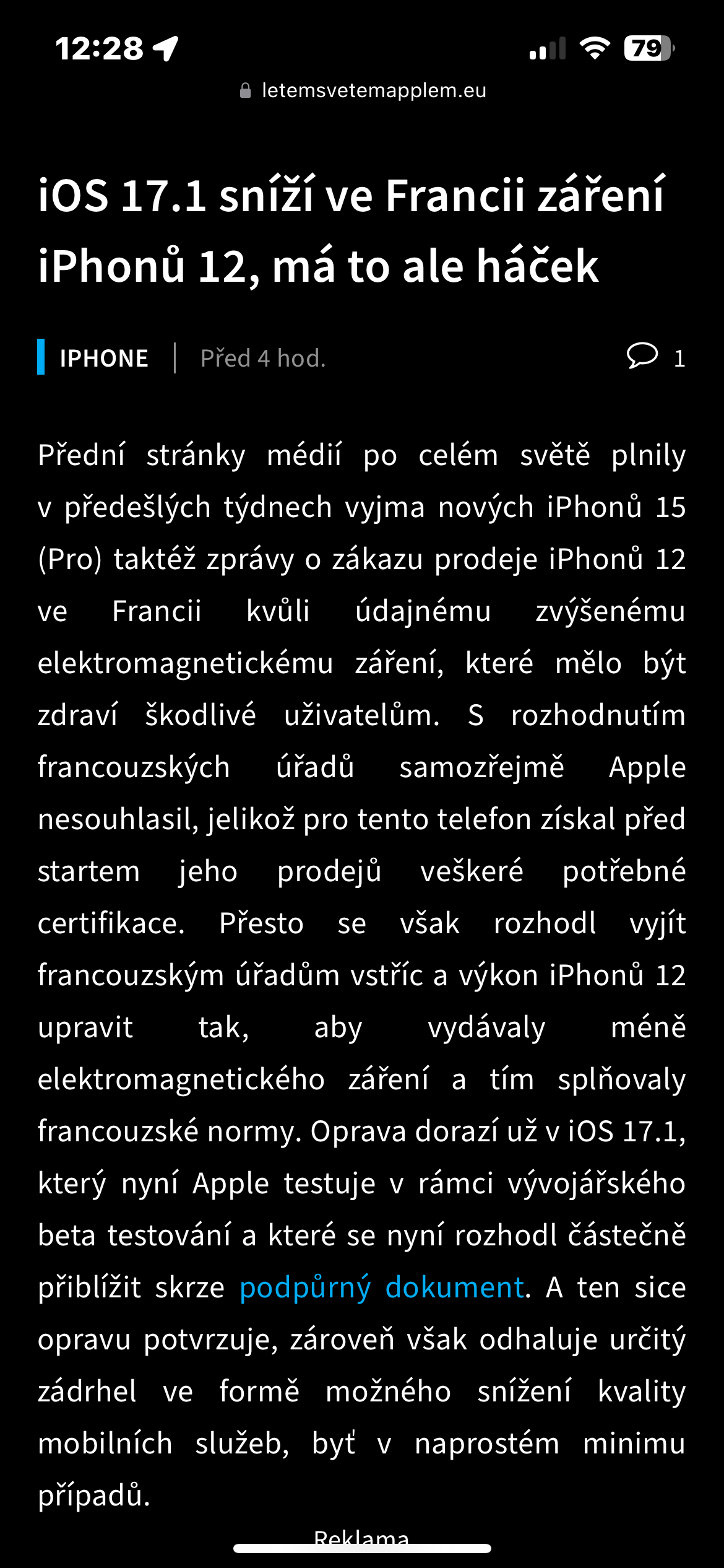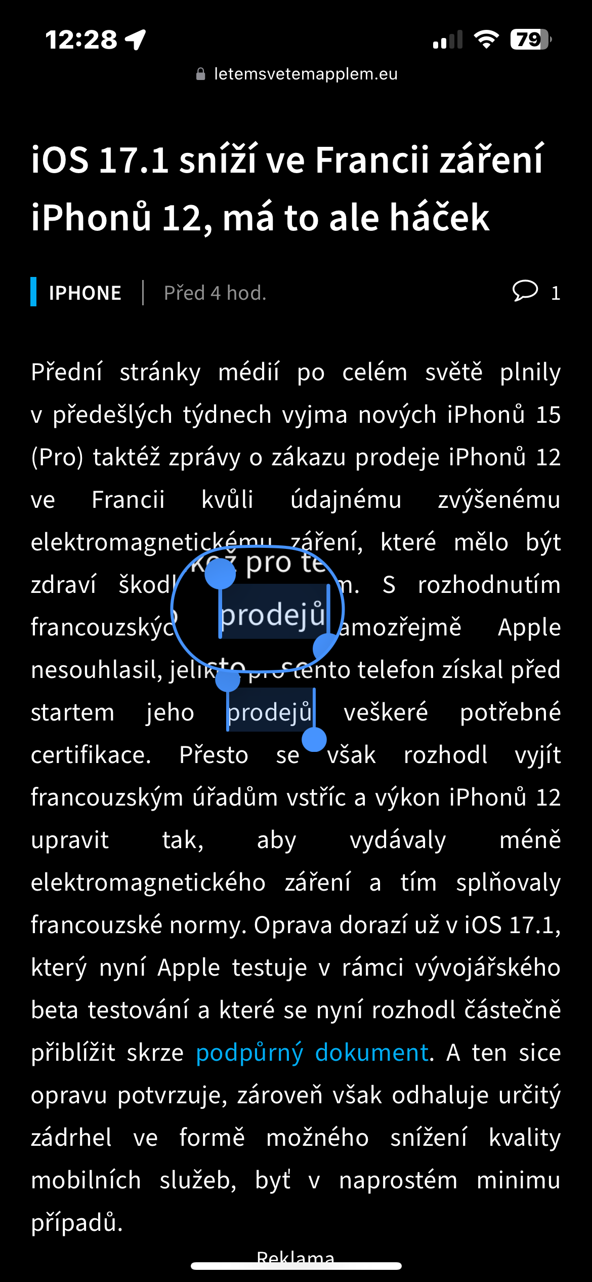 - Na iPhonu otevřete webovou stránku, e-mailovou zprávu nebo třeba textový dokument.