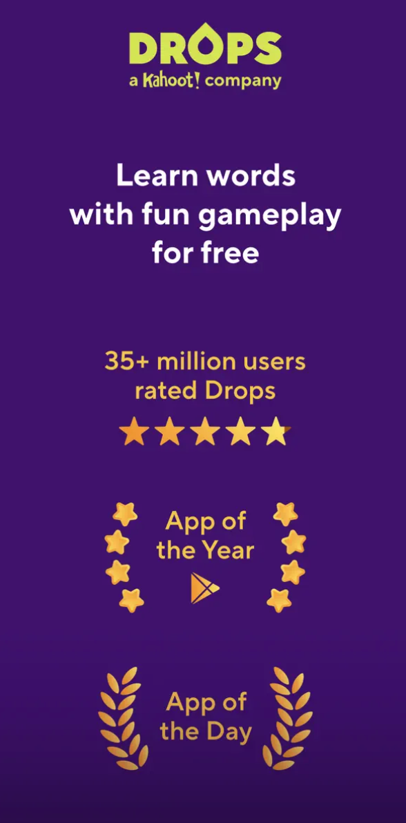 Další oblíbenou aplikací pro učení cizích jazyků je Drops. Drops klade důraz především na hravý způsob výuky, který má uživatele bavit. V zábavných lekcích si postupně osvojíte slovník, fráze, výslovnost, pravopis i gramatiku. Aplikace funguje na bázi předplatného, nabízí ale sedmidenní bezplatnou zkušební lhůtu.