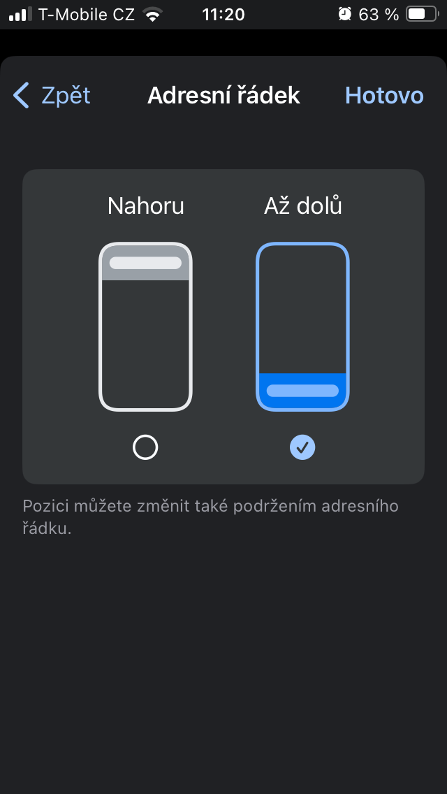 Zároveň technologický gigant z Mountain View vyslyšel volání uživatelů jablečných smartphonů a umožňuje po vzoru této změny v Safari přesunout adresní řádek svého prohlížeče Chrome do spodní části displeje iPhonu.