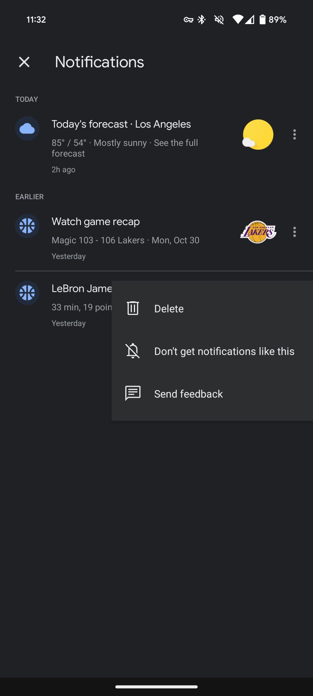 Není zcela jasné, jakým způsobem se bude na displeji zobrazovat, ani zda bude na výběr z více možností. Fotografie naznačuje, že přinejmenším obrácené chronologické pořadí bude jednou z alternativ. Každé oznámení má ikonu tří teček, jež po klepnutí na ni umožní výběr: Odstranit, Nedostávat taková oznámení a Odeslat zpětnou vazbu.