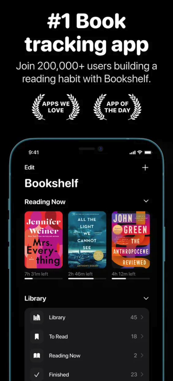 Aplikace s názvem Bookshelf vám pomůže sledovat knihy, vybudovat si trvalý čtenářský návyk a lépe si zapamatovat, co jste četli. Přidávejte si knihy do nejrůznějších seznamů, sledujte statistiky a trendy, nastavte si vlastní čtenářské cíle. Bookshelf umožňuje také zapisování poznámek a citátů z knih.