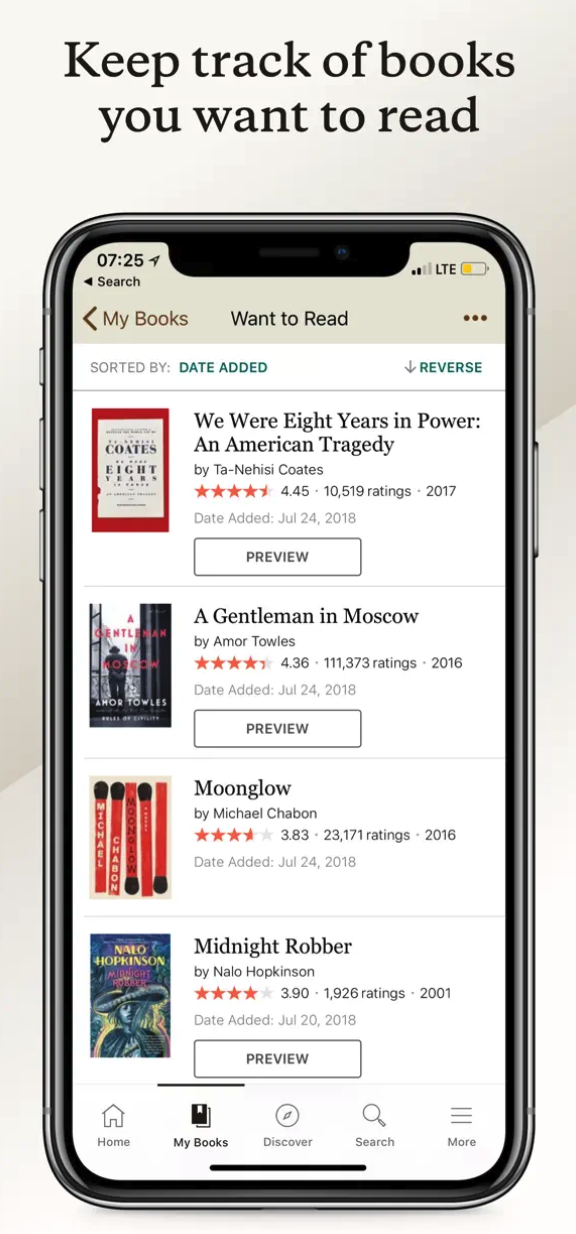 Platforma Goodreads by se dala označit za jakousi sociální síť pro čtenáře. Najdete zde recenze jednotlivých knih, můžete ale také sledovat vaše oblíbené autory, vytvářet seznamy přečtených knih i titulů, které se teprve chystáte číst, a připojit se ke komunitě ostatních čtenářů.